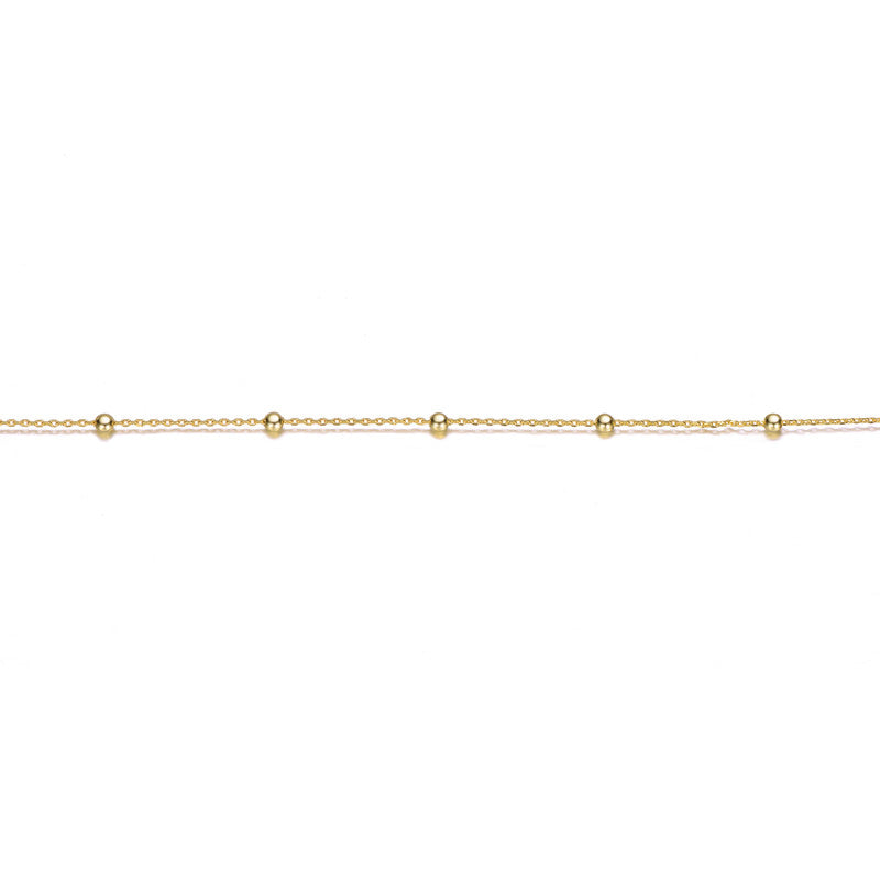 Crafted for timeless elegance, this 14K gold-plated beaded necklace features a delicate chain adorned with polished golden beads. Adjustable for a perfect fit, it’s versatile enough for layering or wearing solo as a chic statement. Ideal for any occasion, this piece effortlessly adds a touch of sophistication to your look or makes a thoughtful gift.