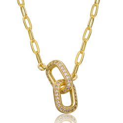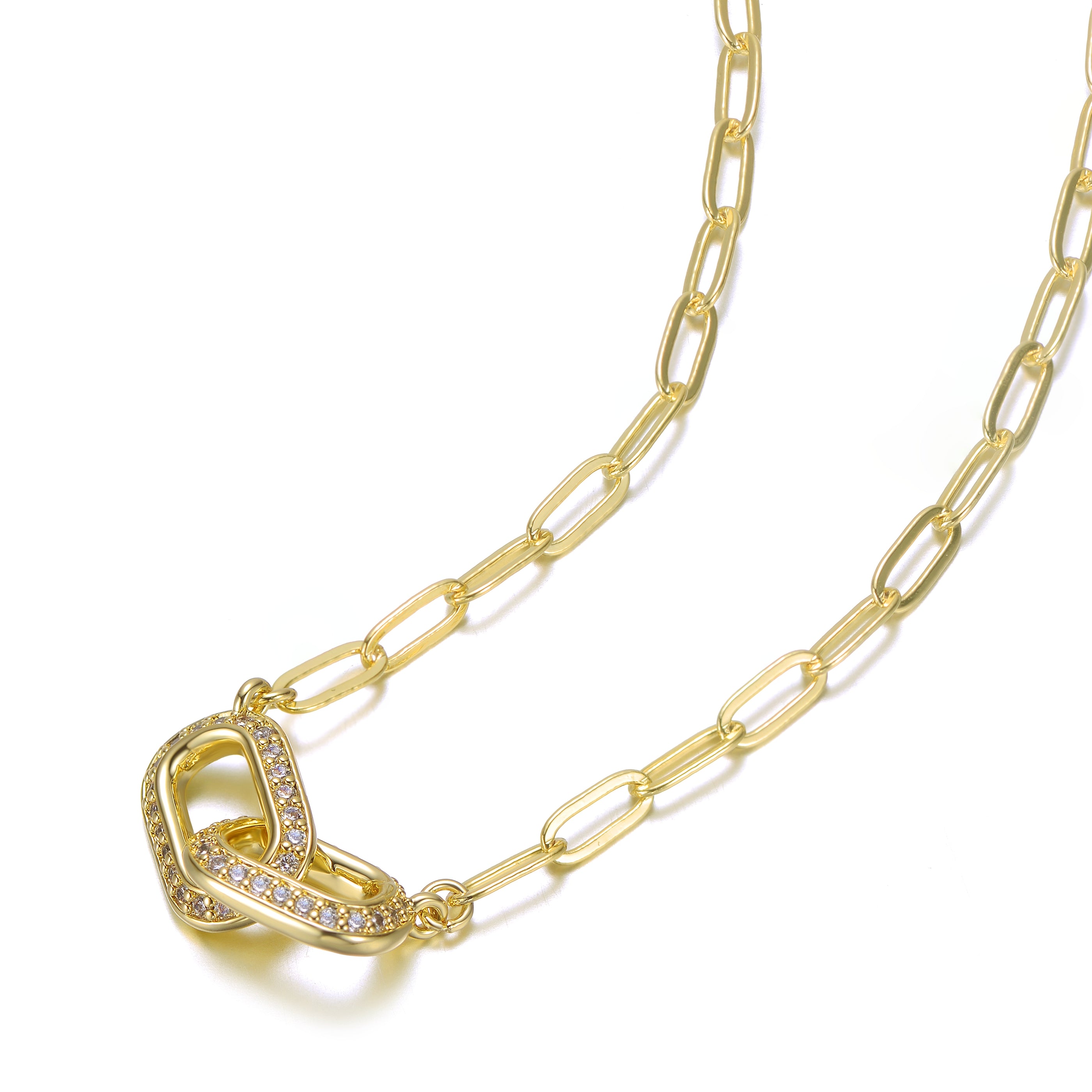 14K Gold Plated Clear Cubic Zirconia Interlocking Links Necklace