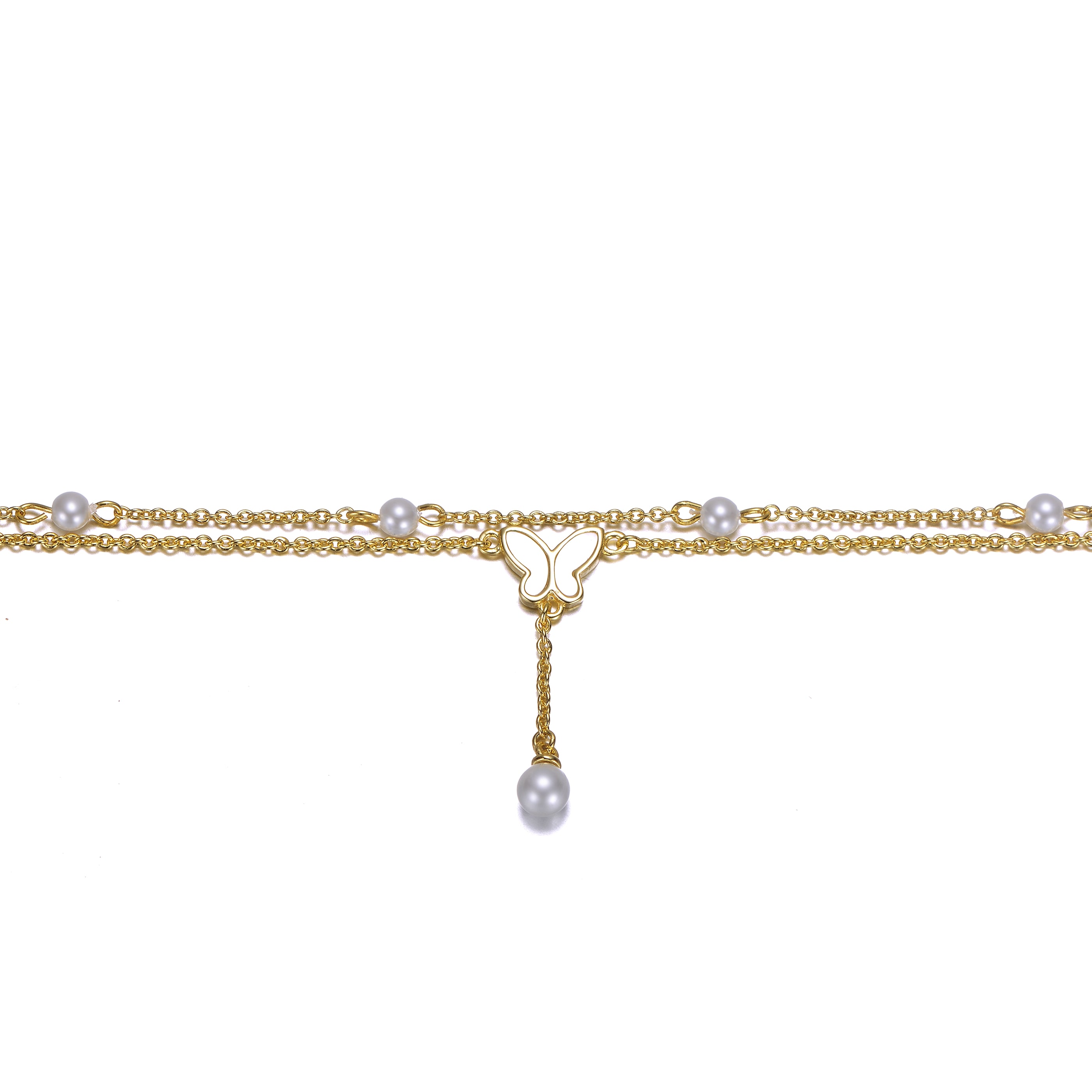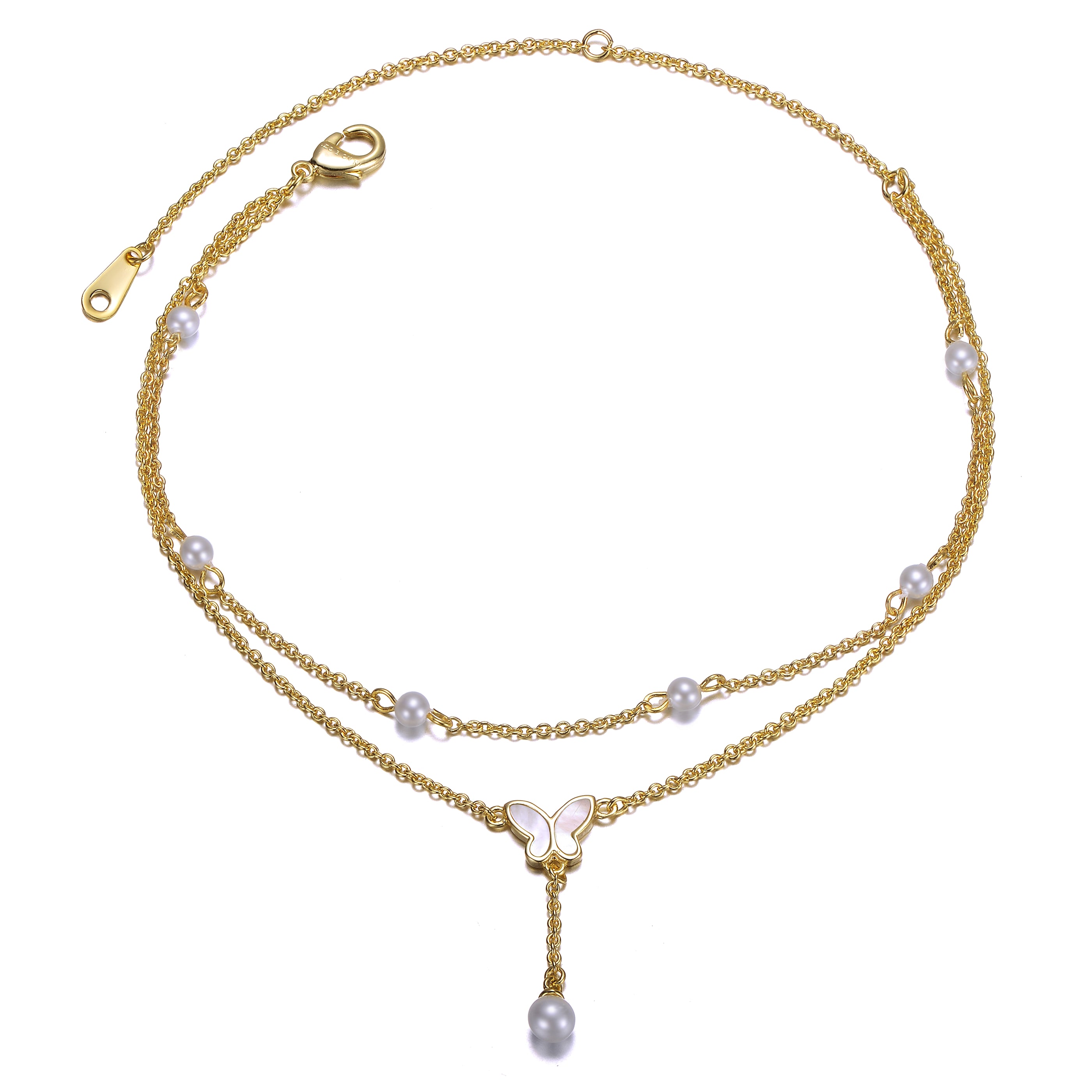 14K Gold Plated Double Layer Pearl and Butterfly Anklet