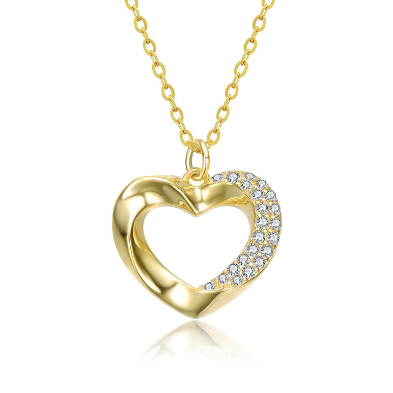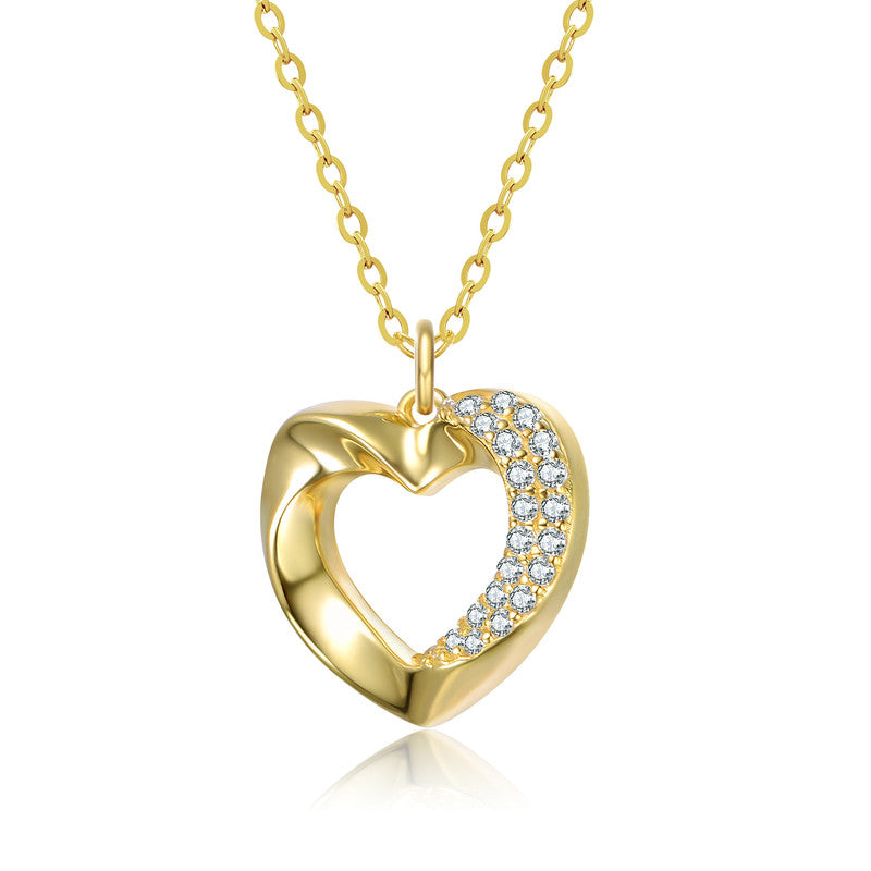 14K Gold Plated Heart Pendant Necklace with Clear Cubic Zirconia