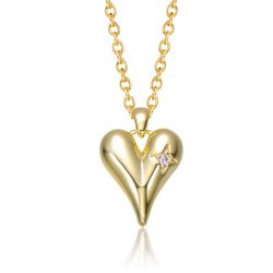 14K Gold Plated Heart Pendant Necklace with Cubic Zirconia