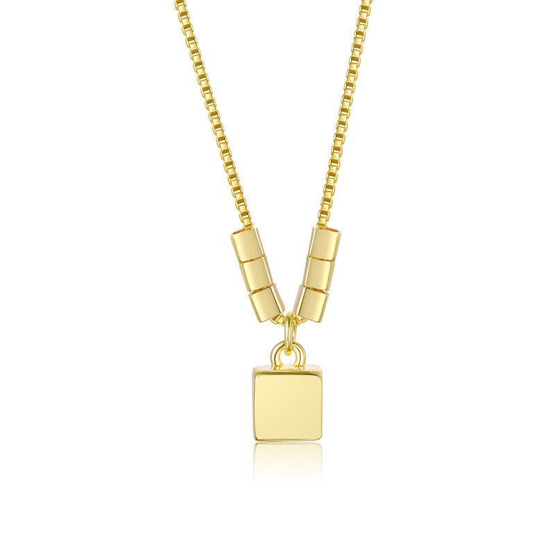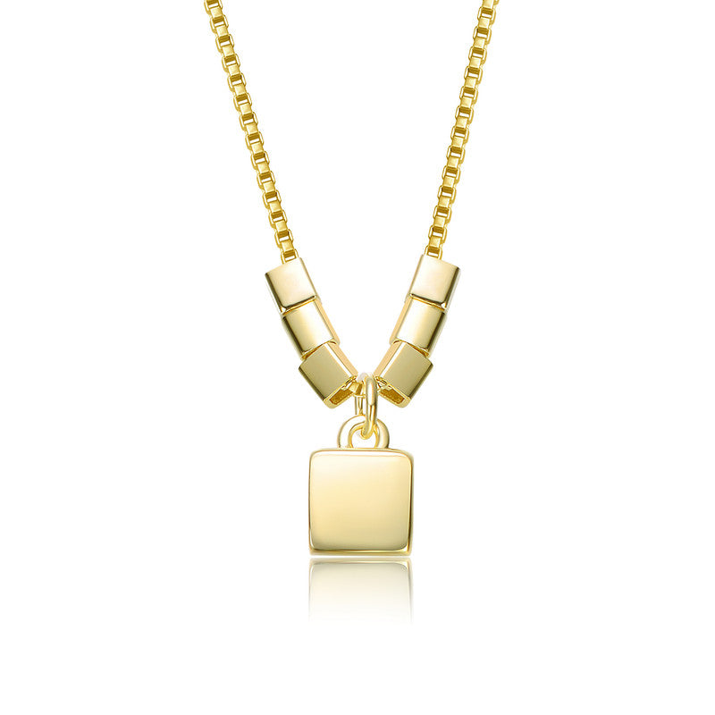 This elegant necklace features a 14K gold-plated lock-shaped pendant, symbolizing strength and unity. The pendant gracefully hangs on a delicate chain adorned with cylindrical beaded accents near the centerpiece, adding texture and charm to the design. The lustrous gold plating enhances its luxurious feel, making it a versatile accessory for both everyday wear and special occasions. Perfect for expressing timeless sophistication!
