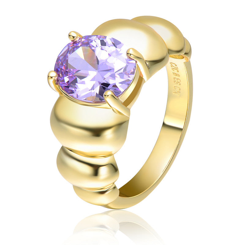 14K Gold Plated with Amethyst Cubic Zirconia Cocktail Ring