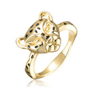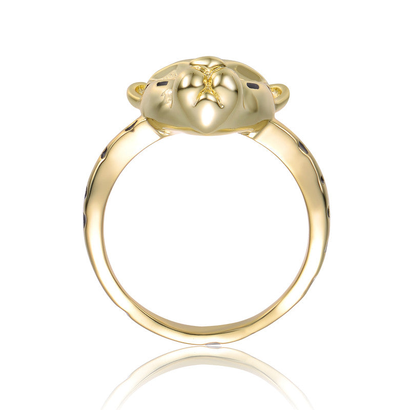 14K Gold Plated with Black Enamel Leopard Face Ring