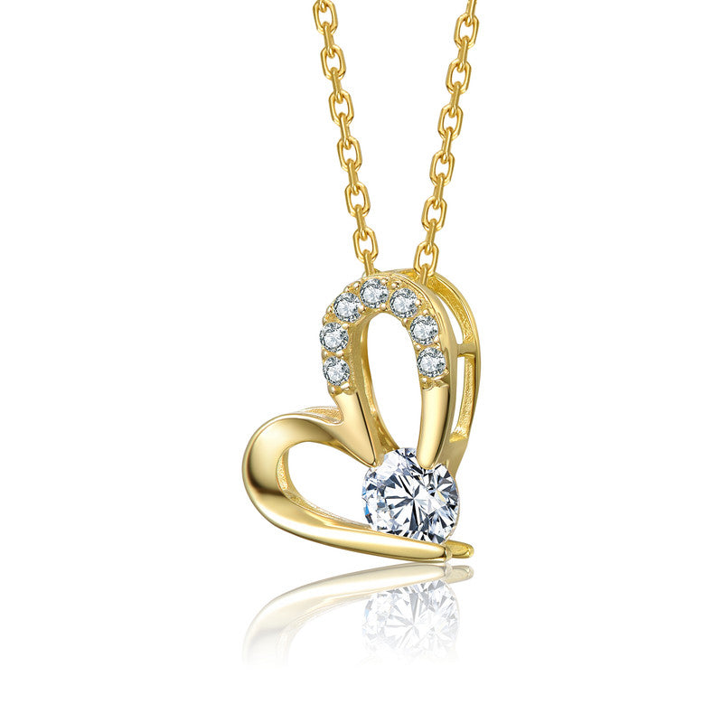 14K Gold Plated with Clear Cubic Zirconia Heart Design Pendant Necklace