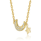 14K Gold Plated with Clear Cubic Zirconia Moon & Star Pendant Necklace