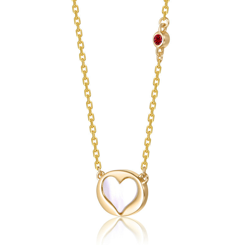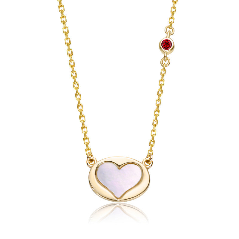 14K Gold Plated with Mother Of Pearl & Red Cubic Zirconia Heart Necklace For Kids