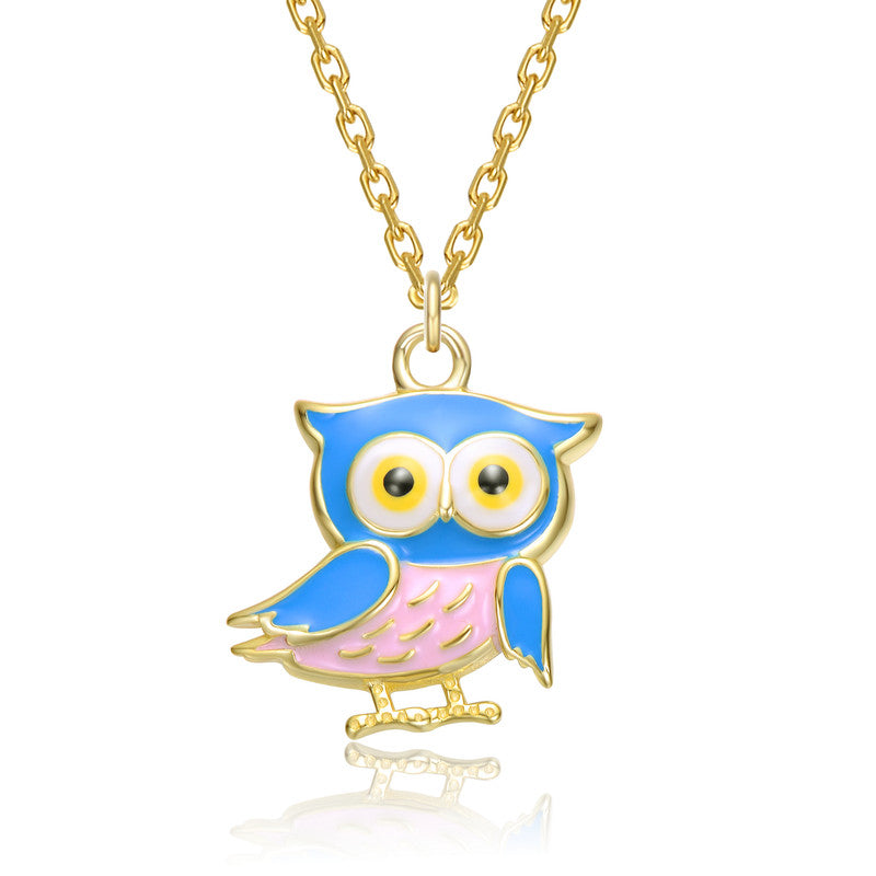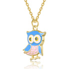 14K Gold Plated with Multi Color Enamel Owl Design Pendant Necklace For Kids