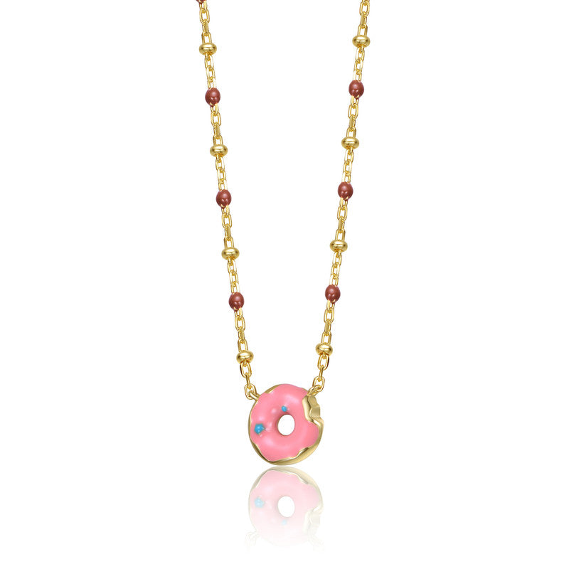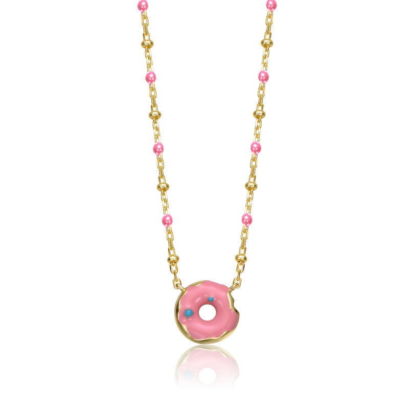 14K Gold Plated with Pink Donut Solitaire Necklace