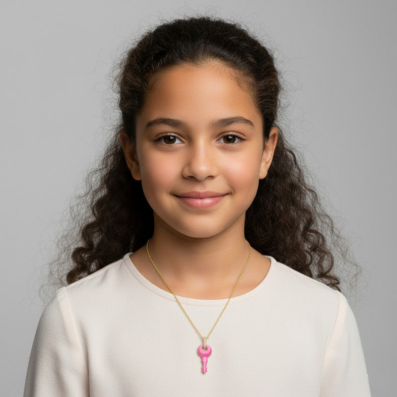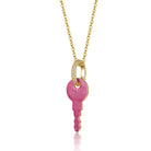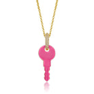 14K Gold Plated with Pink Enamel & Clear Cubic Zirconia Key Pendant Necklace