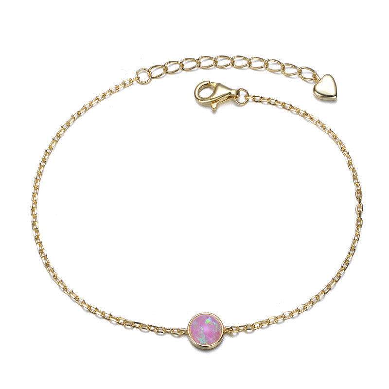Let young hearts shine with this enchanting bracelet! Crafted with 14K gold plating, it features a radiant pink opal cubic zirconia centerpiece that adds a touch of elegance and sparkle. The adjustable design ensures a comfortable fit for kids and teens, making it a perfect accessory for everyday wear or special occasions. With its playful charm and timeless beauty, this bracelet is sure to become a favorite in their jewelry collection. A lovely gift for the ones who bring joy to your life!