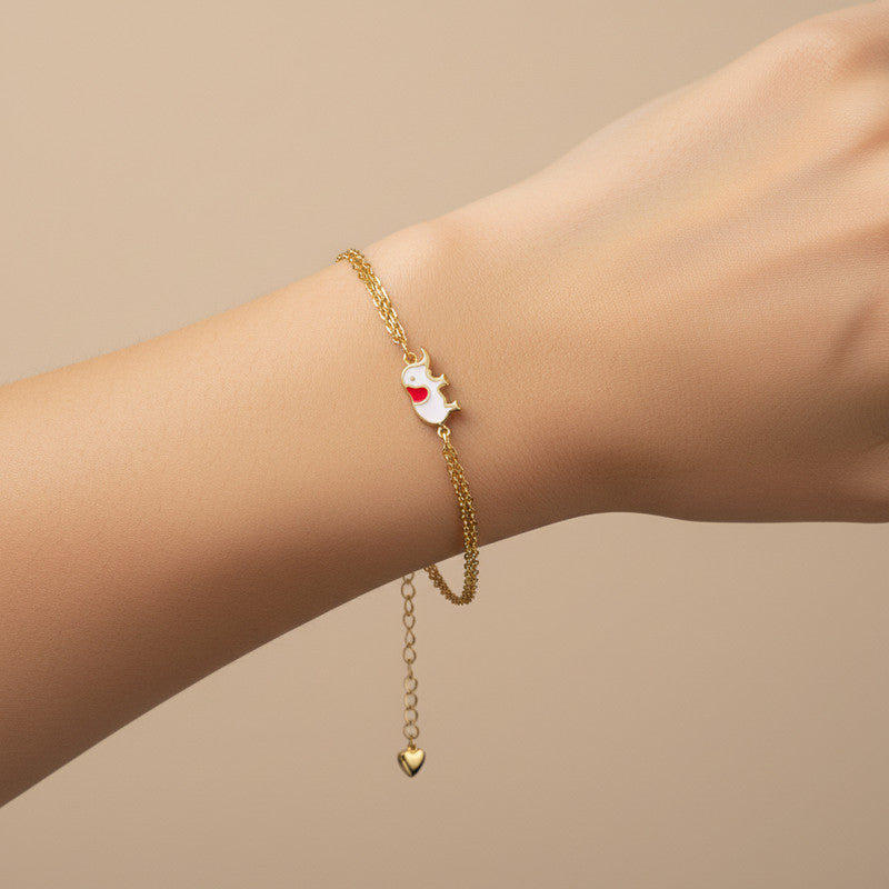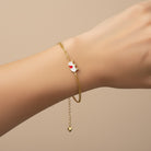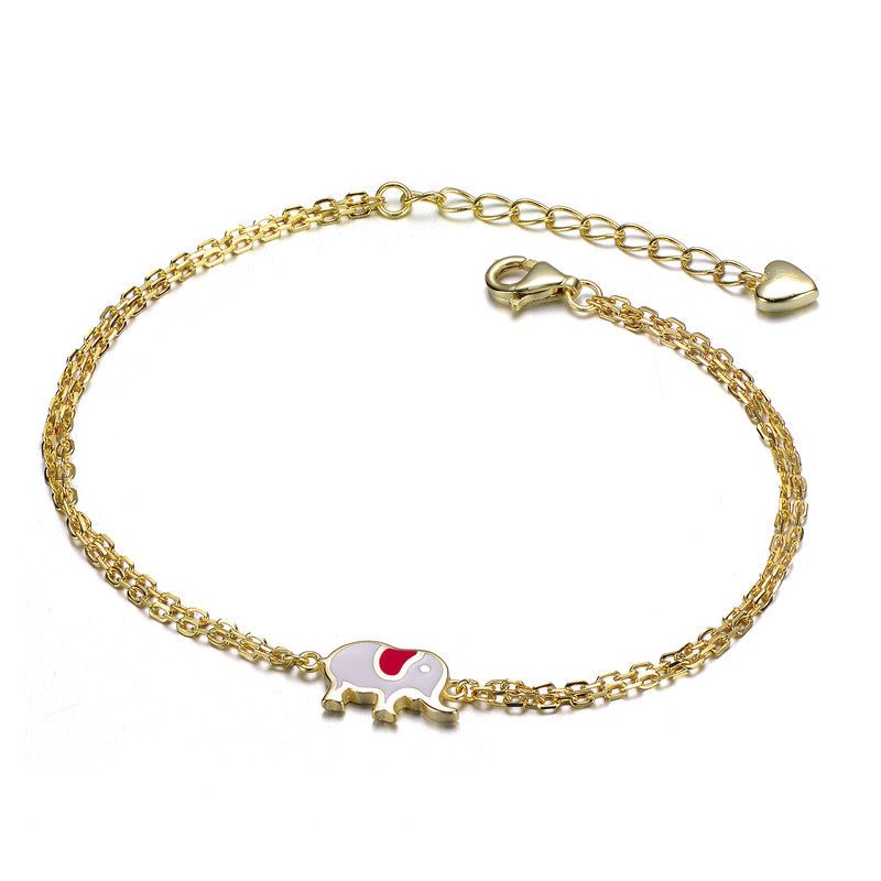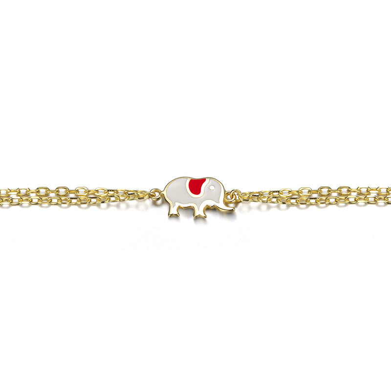 Add a touch of charm and symbolism to your collection with this 14K gold-plated bracelet featuring a delicate enamel elephant charm adorned with a sweet red heart. Elephants are revered symbols of strength, wisdom, and good luck, making this bracelet not only a stylish choice but also one imbued with meaning. The fine 14K gold-plated chain offers adjustable sizing, ensuring a perfect fit. Thoughtfully crafted, the design exudes warmth and personality, making it a standout addition to any jewelry ensemble. Whether styled alone or layered, this bracelet beautifully captures both sophistication and whimsy in a single elegant piece. Measurement: 4.75+1 inches.
