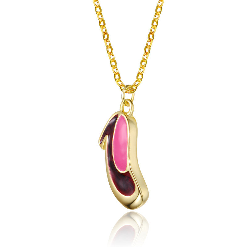 14K Gold Plated with Pink & Red Enamel High Heel Pendant Necklace