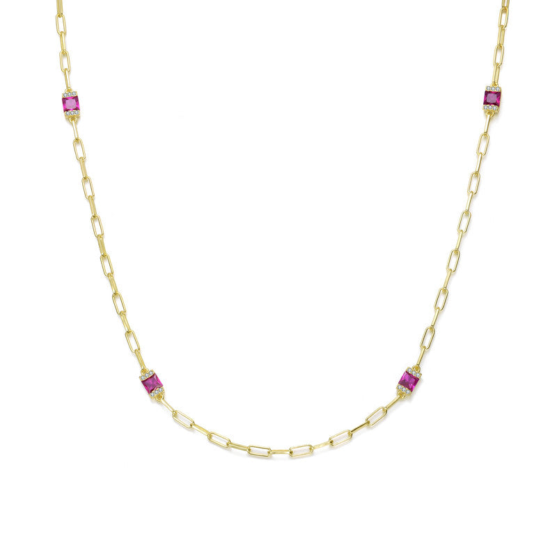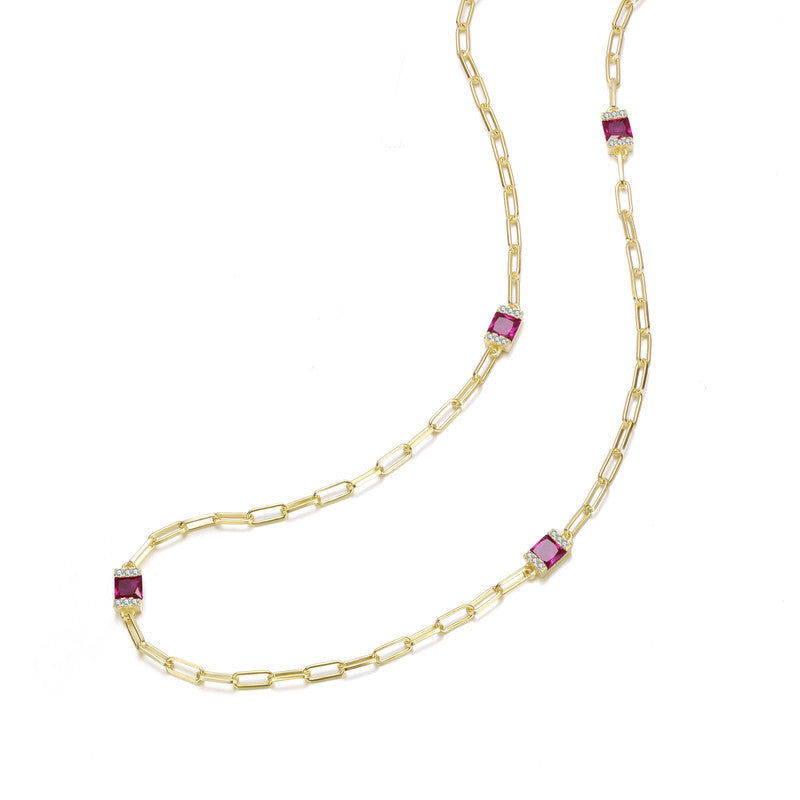 14K Gold Plated with Ruby Red Square Accents Chain Necklace