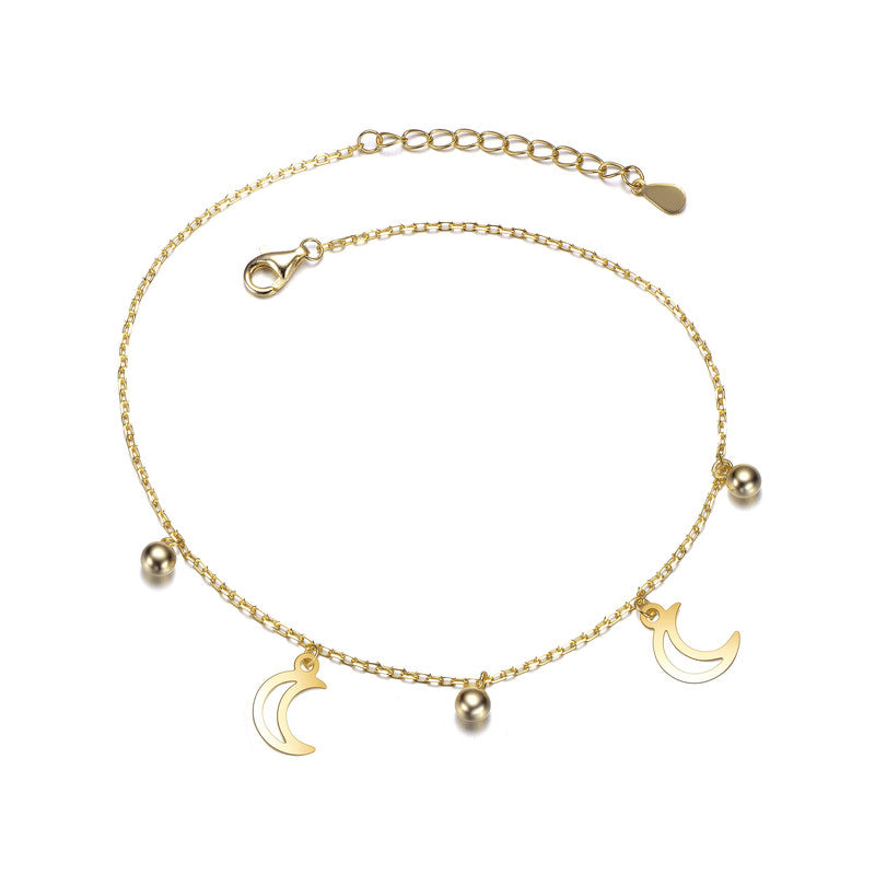 14K Gold Plated with Vrescent Moon & Bead Charm Bracelet