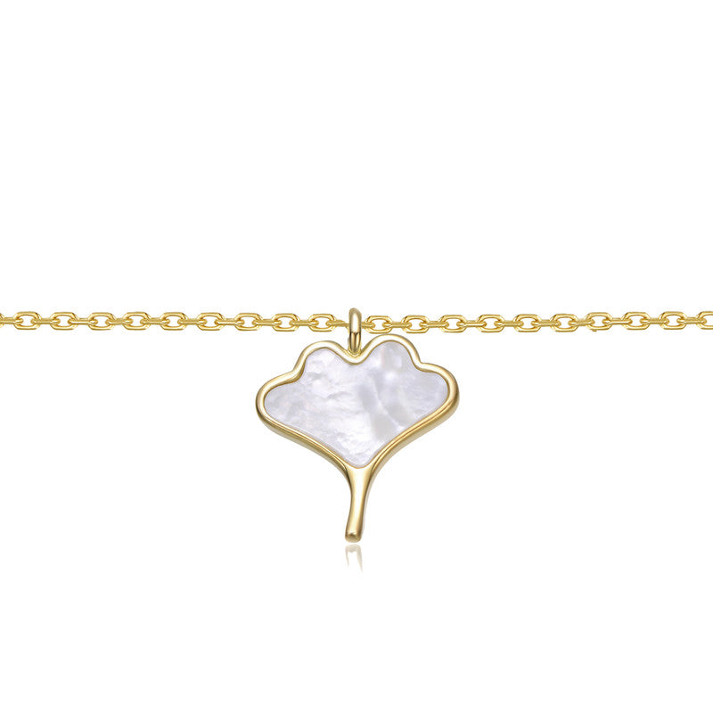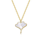 14K Gold Plated with White Mother-of-Pearl Ginkgo Leaf Design Pendant Necklace