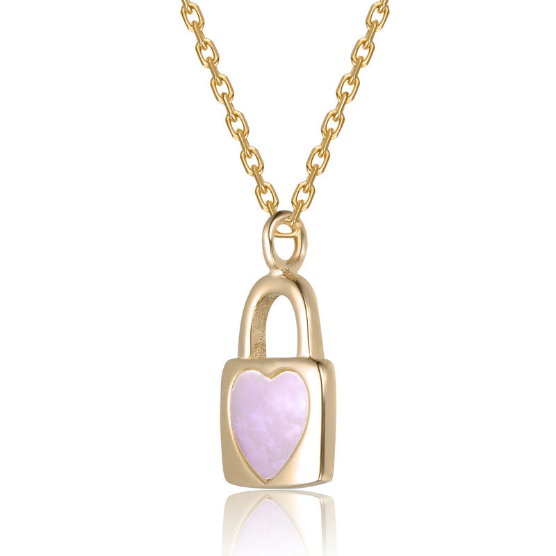 14K Gold Plated with White Mother Of Pearl Heart-Shaped Lock Pendant Necklace For Kids