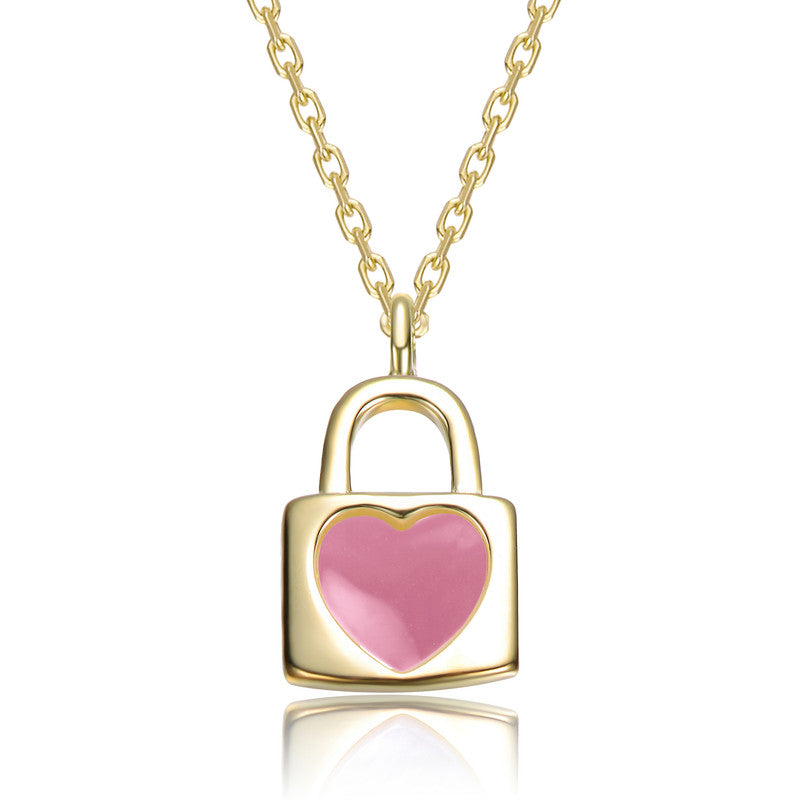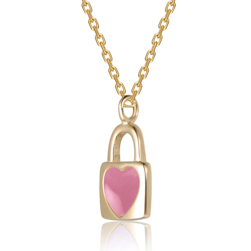 This exquisite 14K gold plating pendant features a heart-shaped pink lock pendant, blending romance and sophistication. The finely crafted chain elegantly complements the pendant, which symbolizes love, security, and devotion. The soft pink hue adds a touch of warmth and charm, making it an ideal gift for someone special. Perfect for everyday wear or special occasions, this delicate yet meaningful piece effortlessly enhances any outfit.