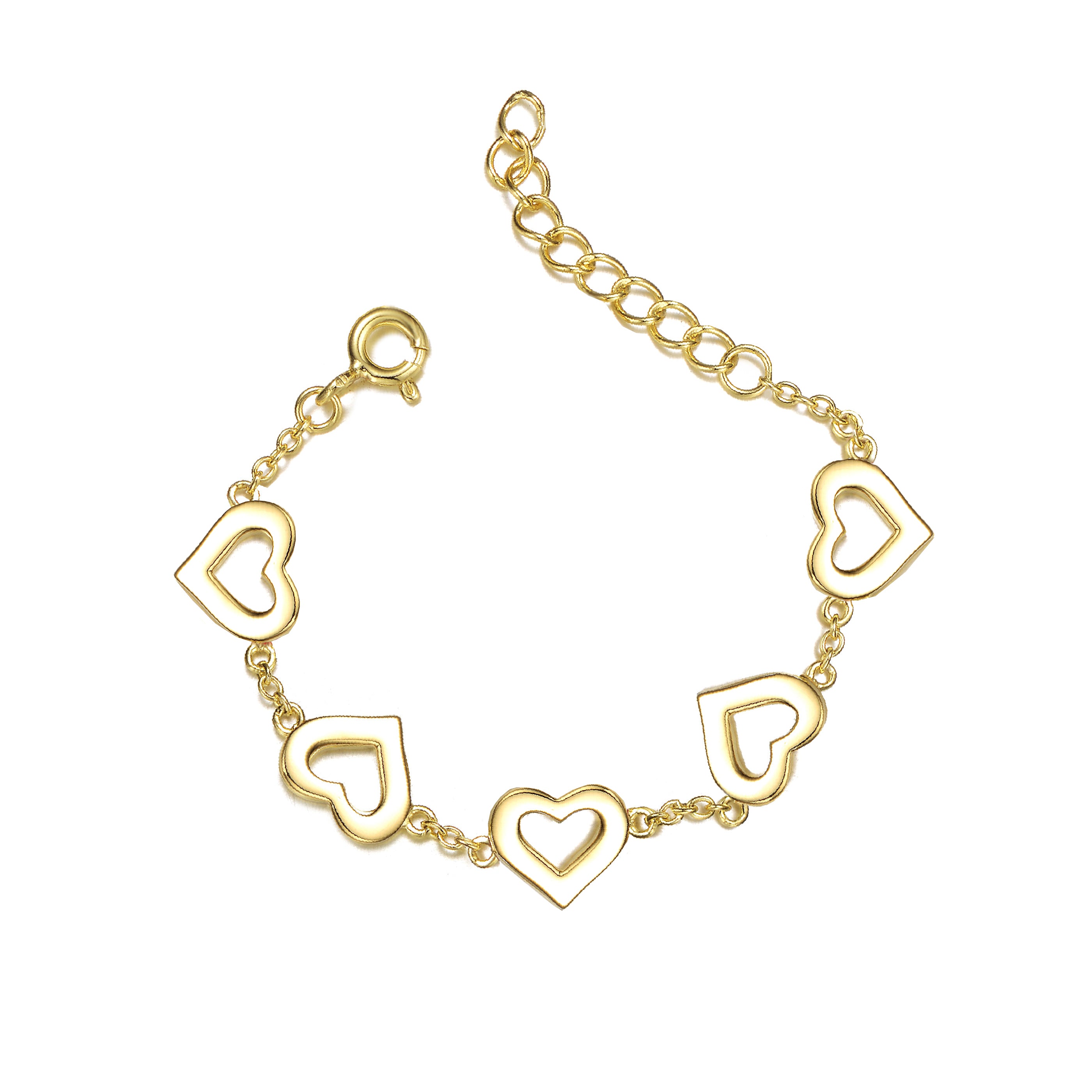 14k Yellow Gold Plated Forever Heart Toddler Bracelet, Adjustable in Length, 1-6yrs