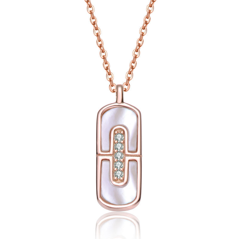 18K Rose Gold plated with Mother Of Pearl & Clear Cubic Zirconia Pendant Necklace For Adults