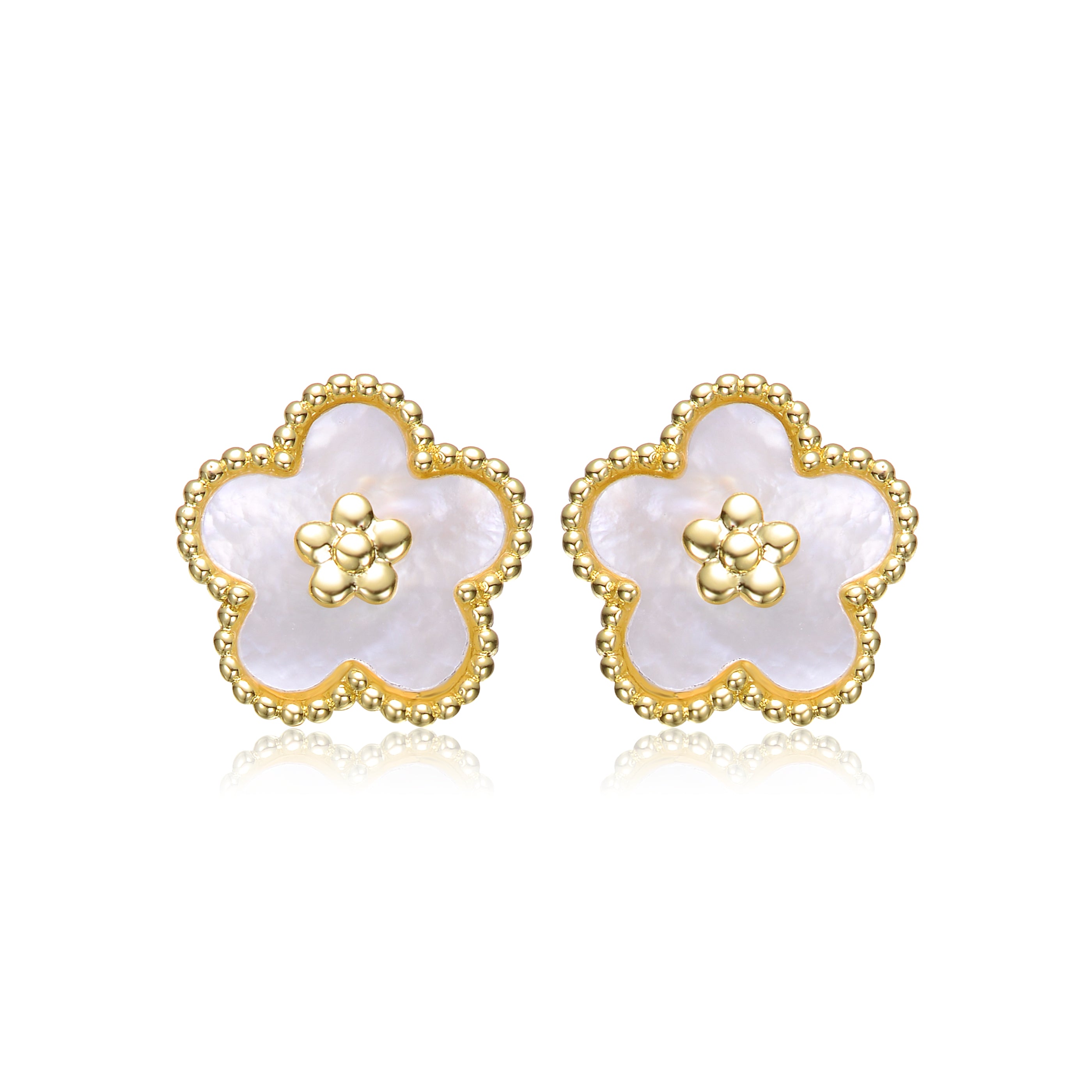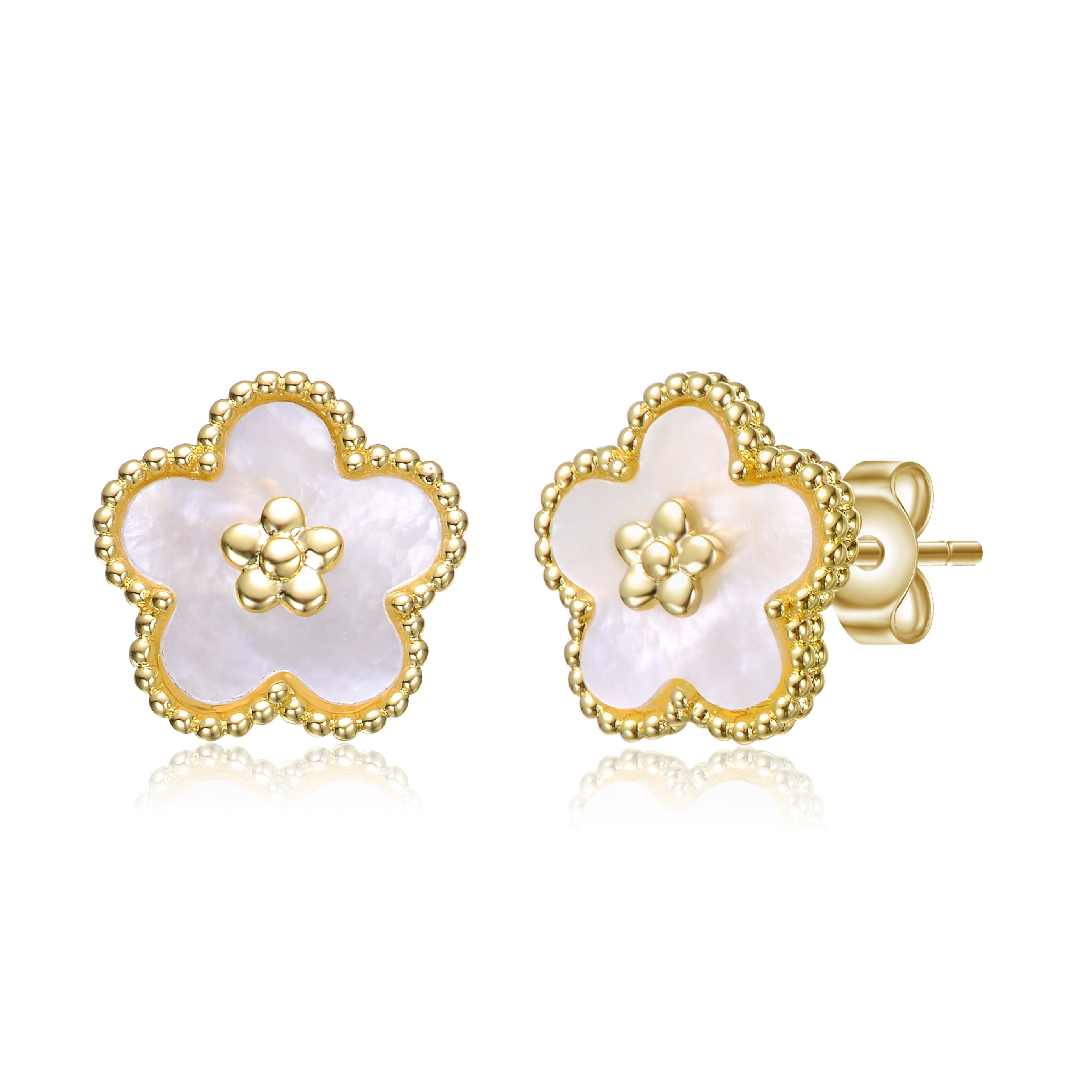 Charming Kids 14k Gold Plated Mother of Pearl Flower Earrings