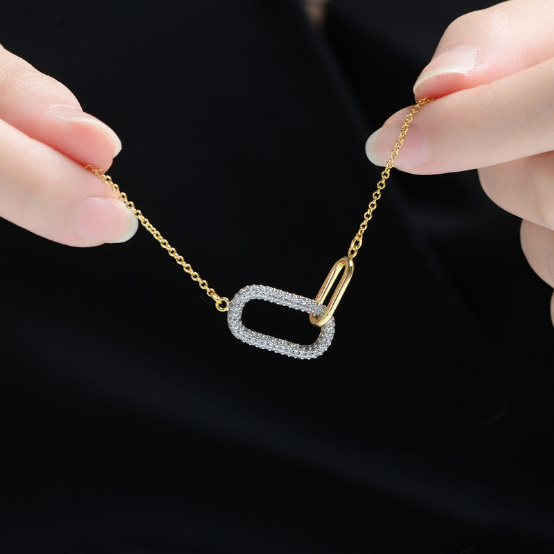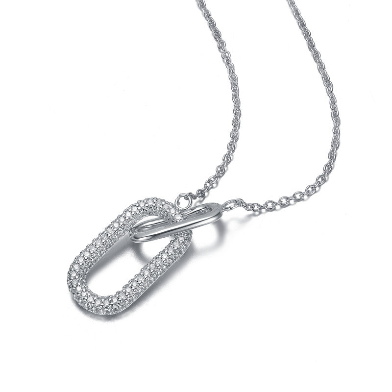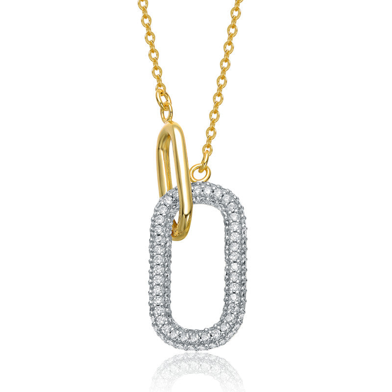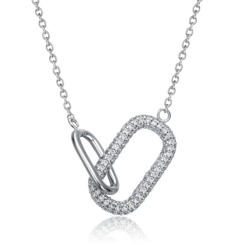 Clear Cubic Zirconia Interlocking Links Necklace in White Gold Plated or 14K Gold Plated