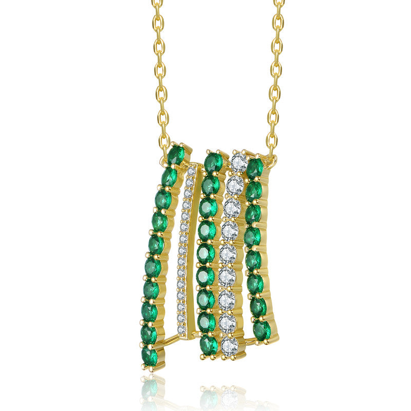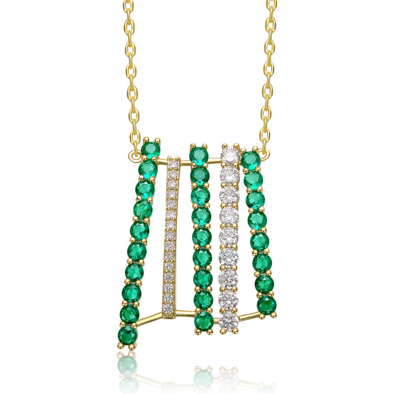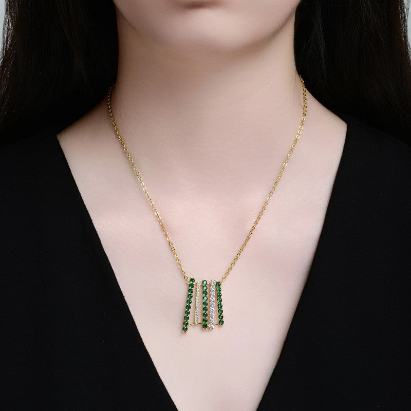 Clear & Emerald Green Cubic Zirconia Bar Pendant Necklace