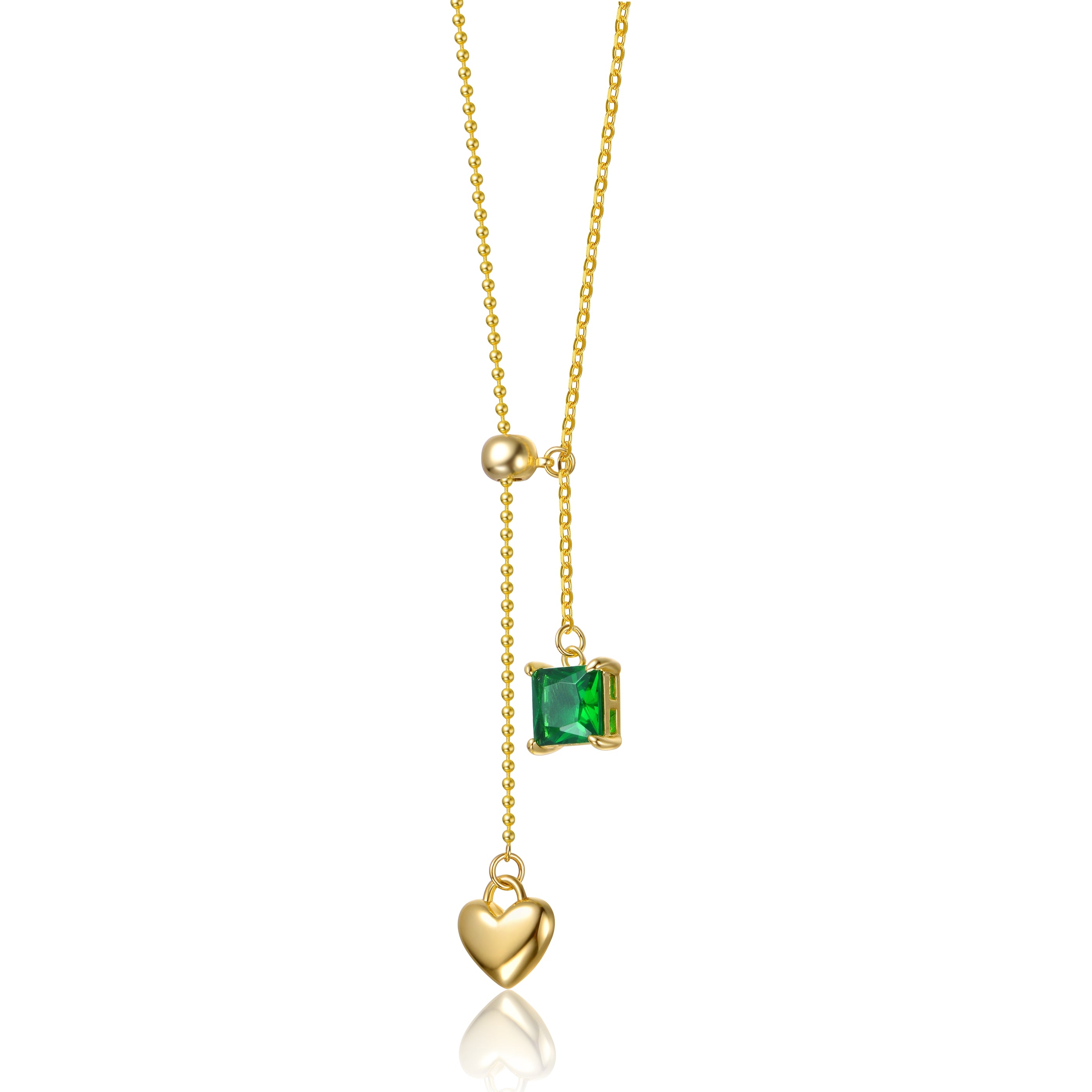 Gold-Plated Emerald Cubic Zirconia Necklace with Heart Pendant