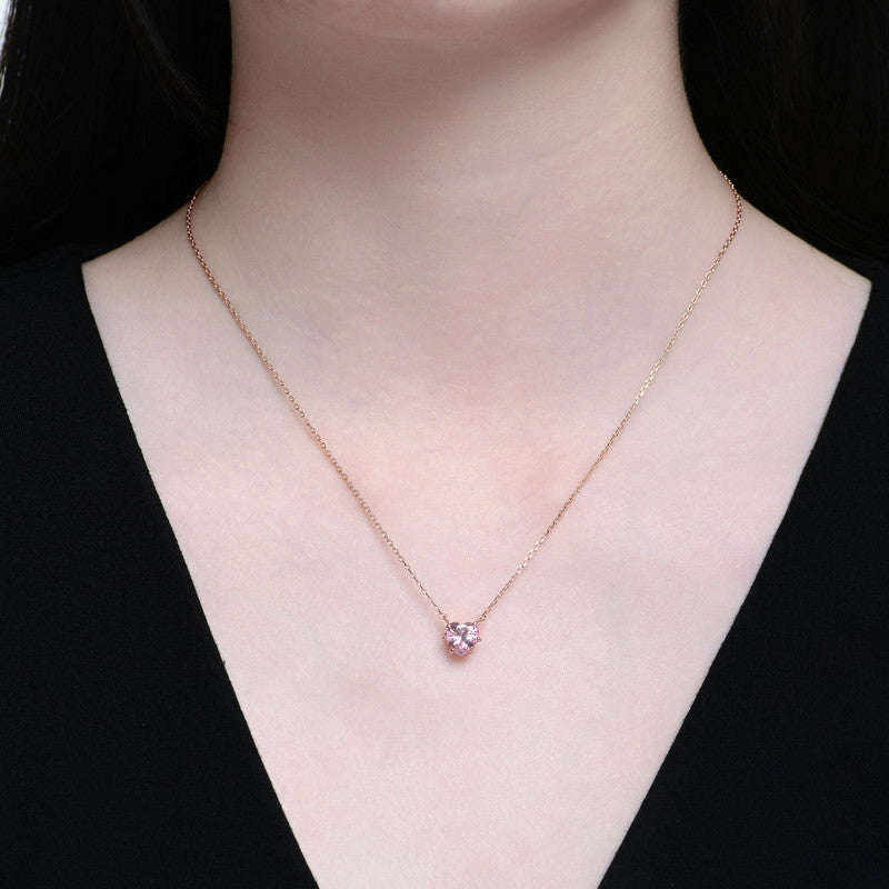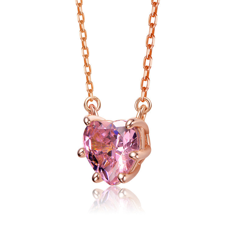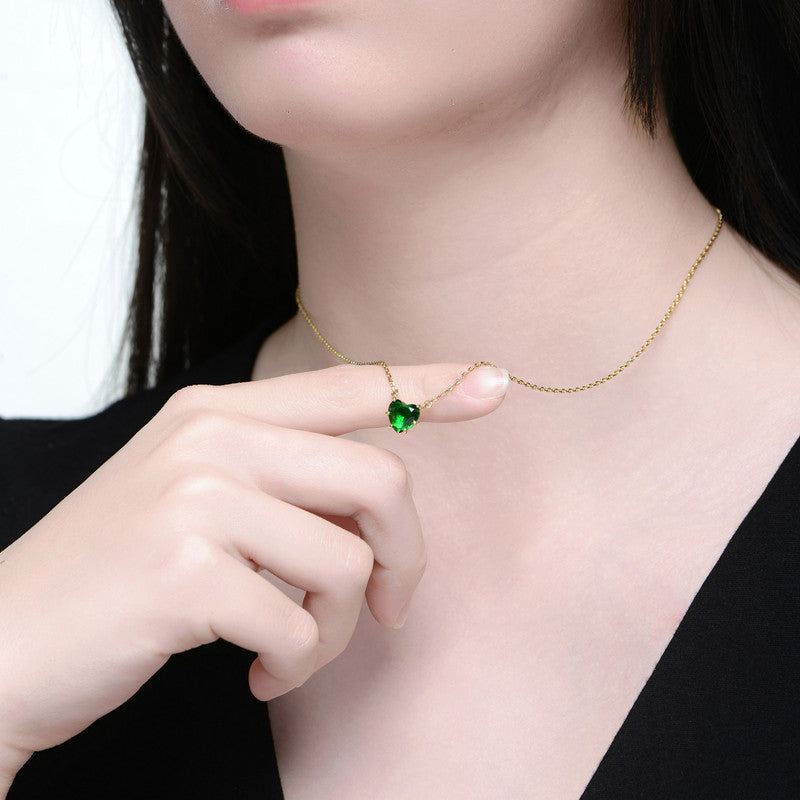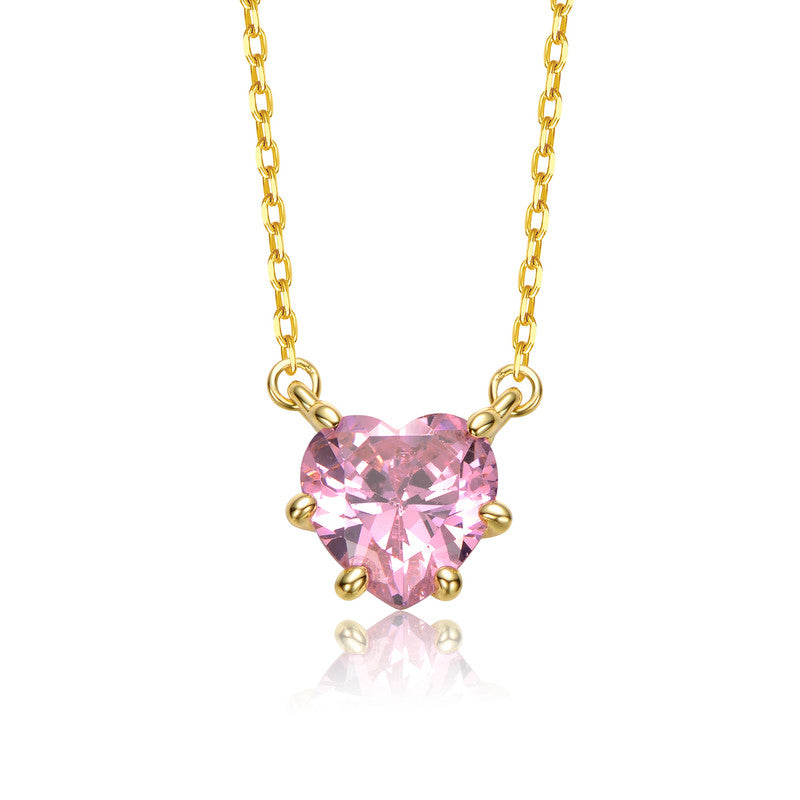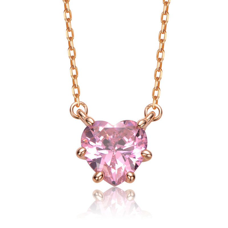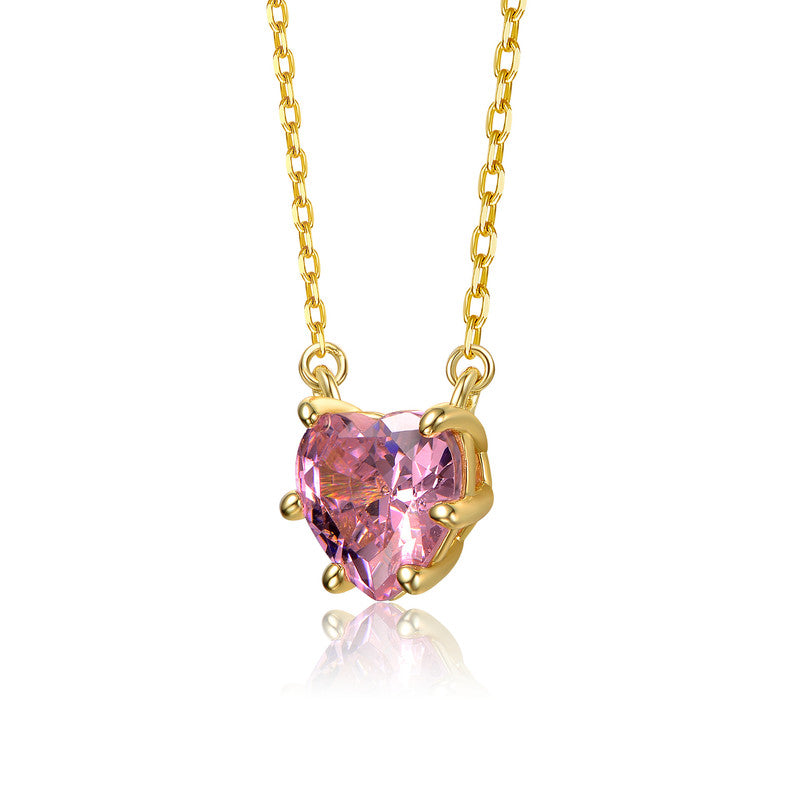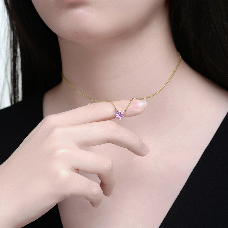 Heart-Shaped Colored Cubic Zirconia Solitaire Necklace