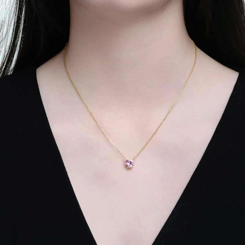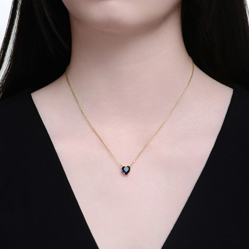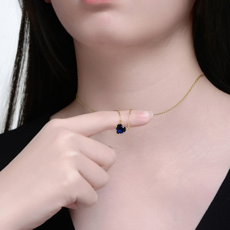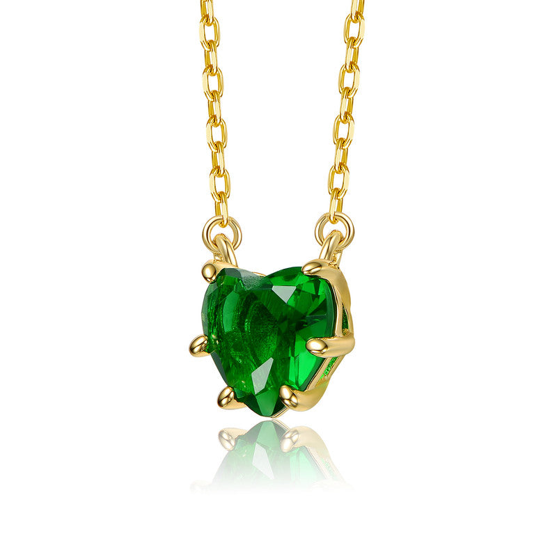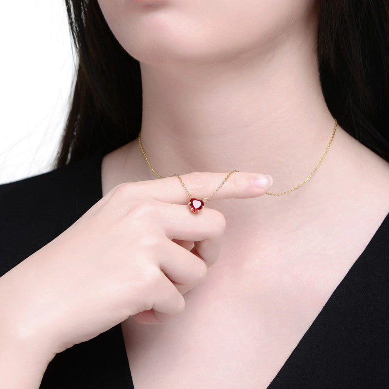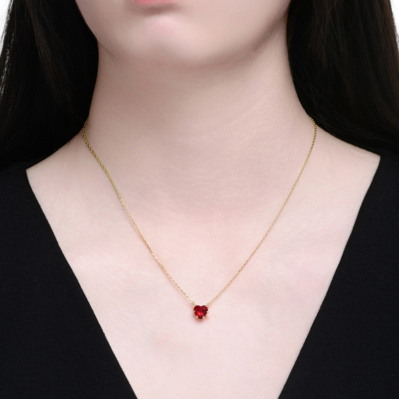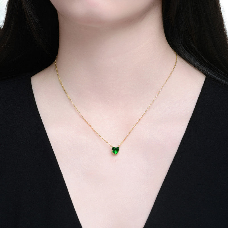 Heart-Shaped Colored Cubic Zirconia Solitaire Necklace