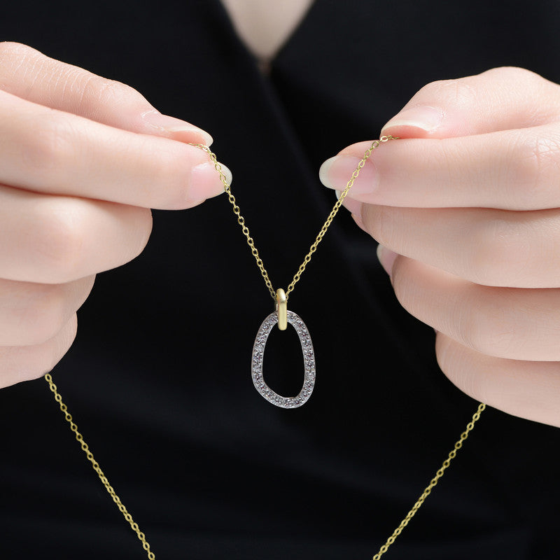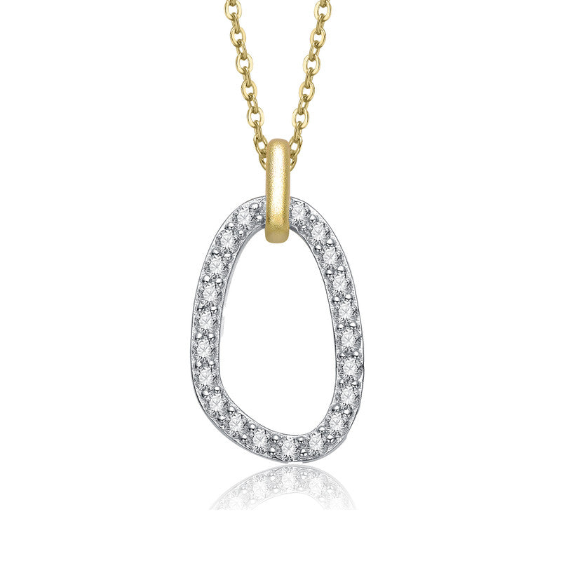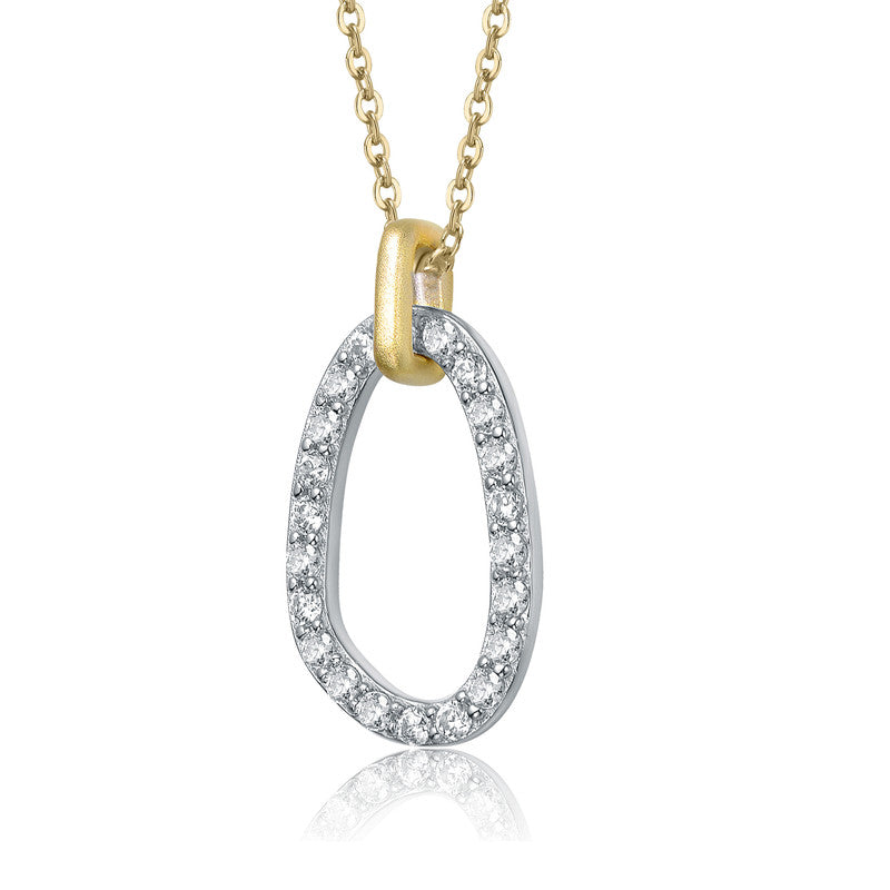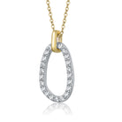 Two Tone with Clear Cubic Zirconia Oval Shaped Drop Pendant Necklace