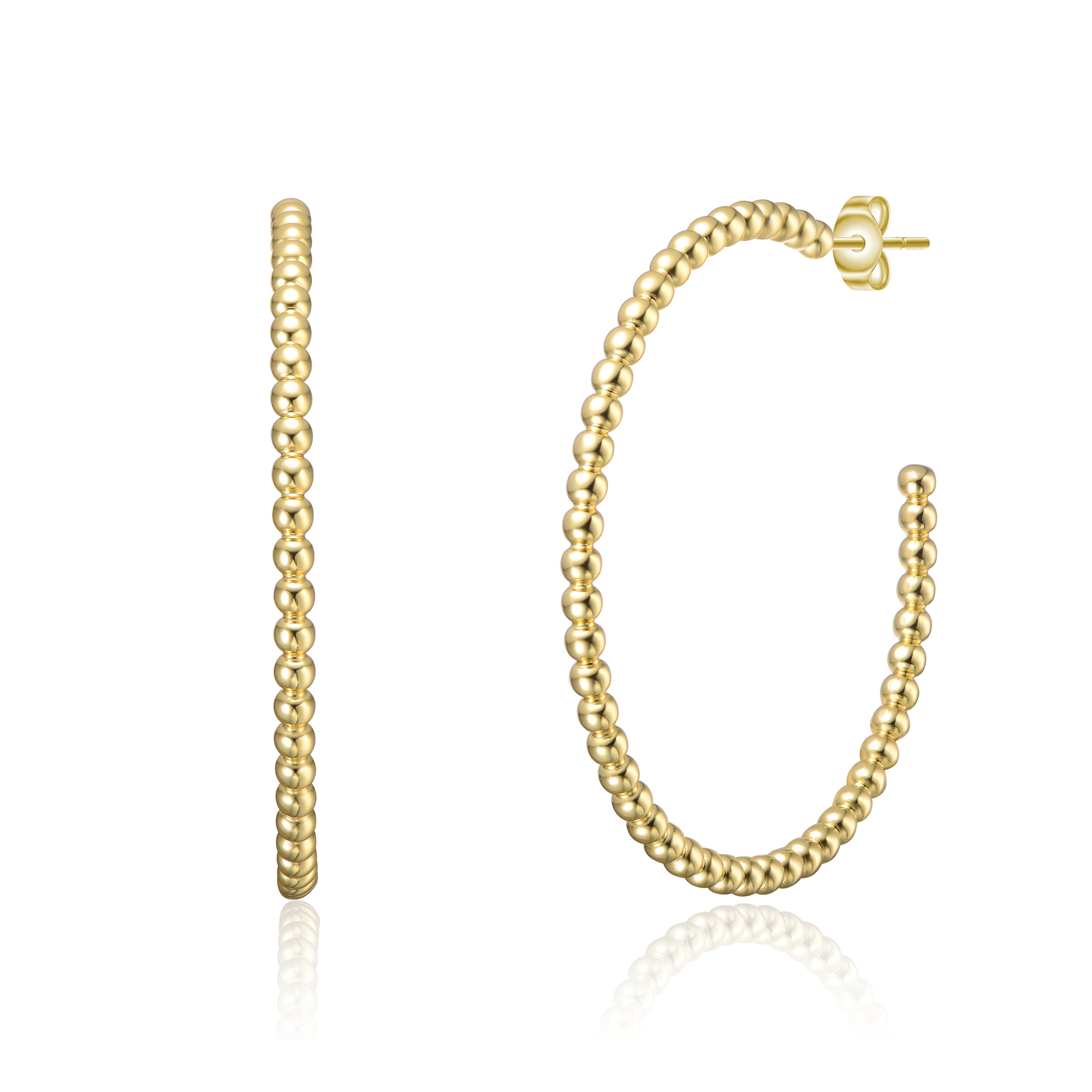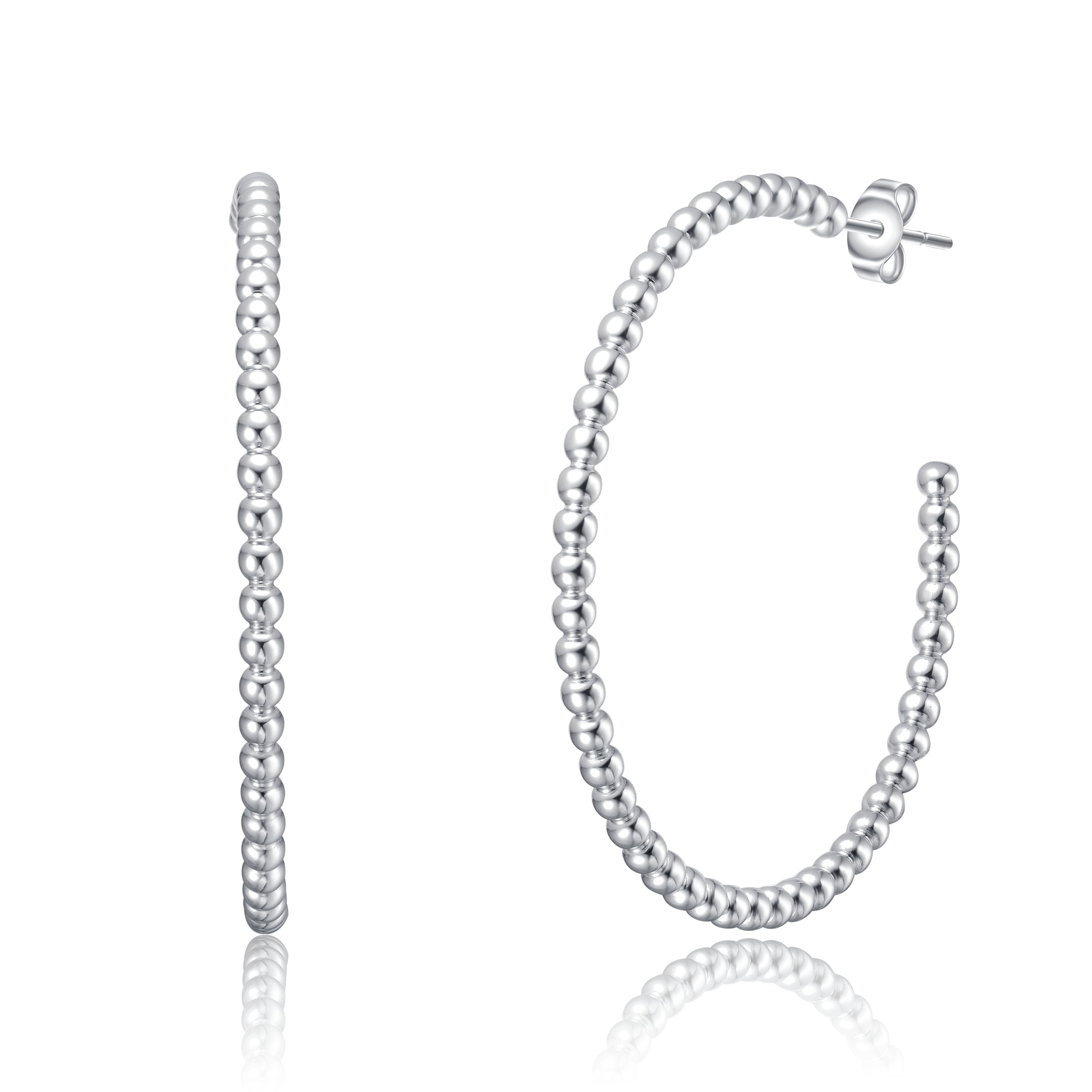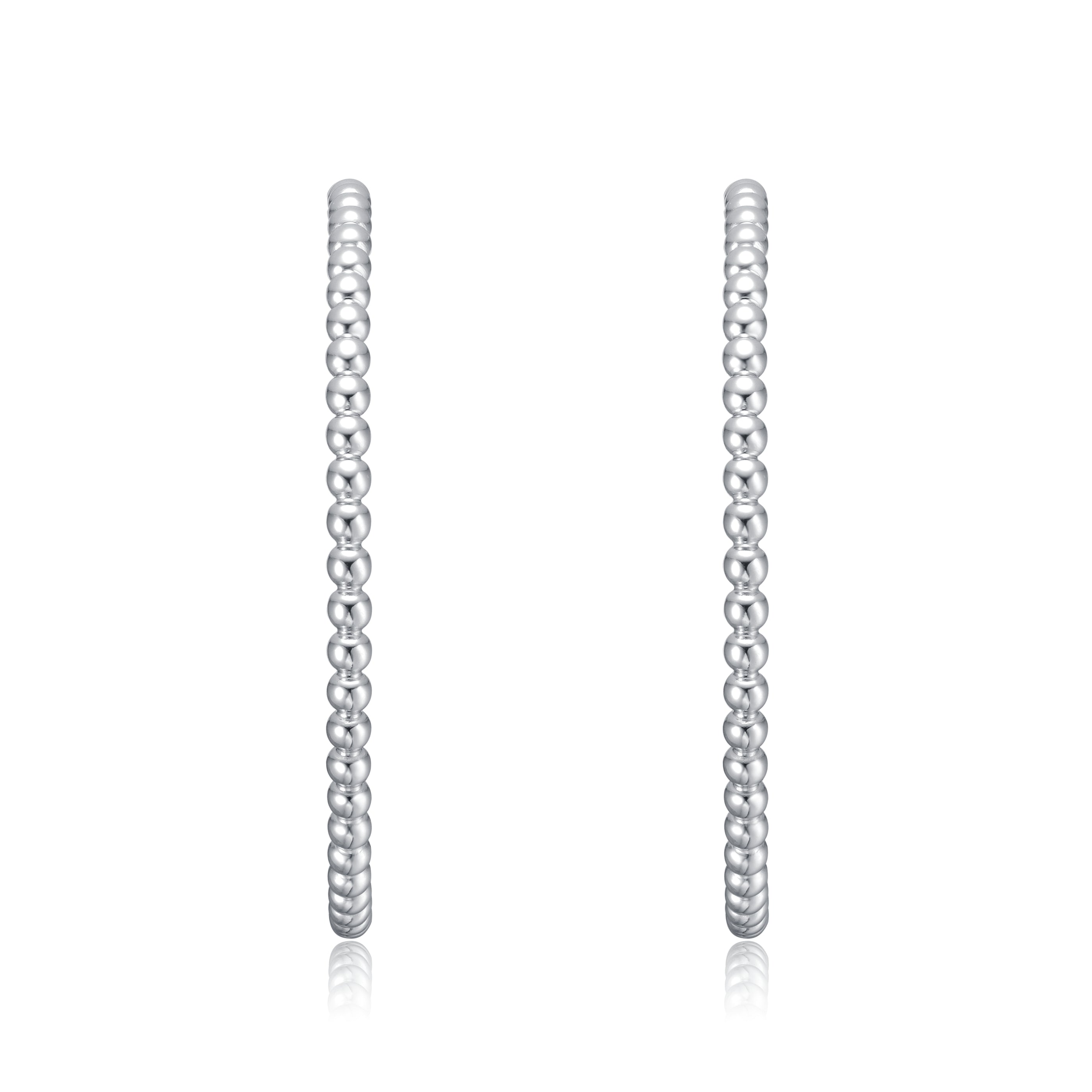 White Gold Plated Modern Texture Bead C-Hoop Earrings. Exude contemporary elegance to your wardrobe with these stunning white gold plated 3/4 C-hoop earrings. These open c-hoops feature a beaded ball texture, adding a unique twist to the classic open hoop silhouette. Dress up any outfit with a look that is right on-trend, perfect for those who love contemporary styles and classic elegance. Butterfly backs keep them in place, all crafted in a brightly polished finish.