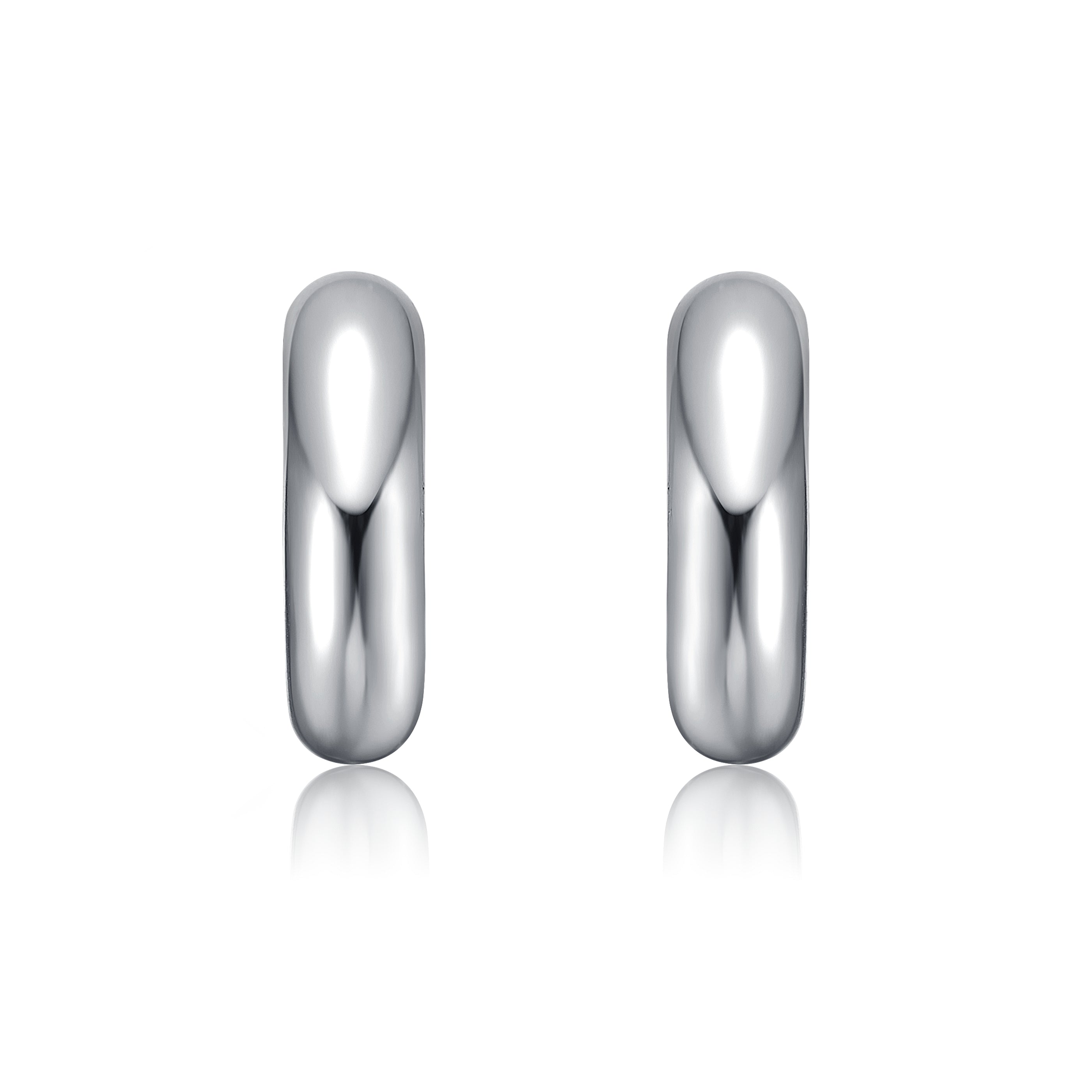 White Gold Plated Slim Mini Tubular C-Hoop Earrings. Refresh your Ear Party and fashion jewelry collection with these super-versatile white gold plated c-hoop earrings. The slim, tubular shape sits close to the earlobes, making these lightweight, shiny hoops the perfect complement to your casual, night, or workwear with their understated elegance. Butterfly post backs keep these earrings in place, allowing them to offset neighboring earrings on other ear holes for a highly accessorized style.