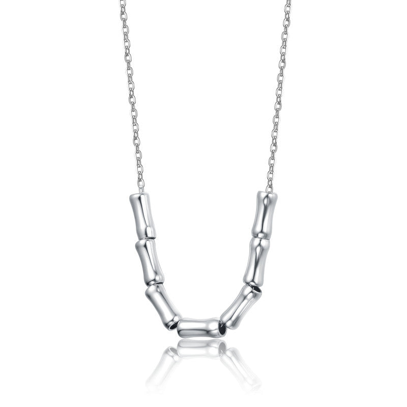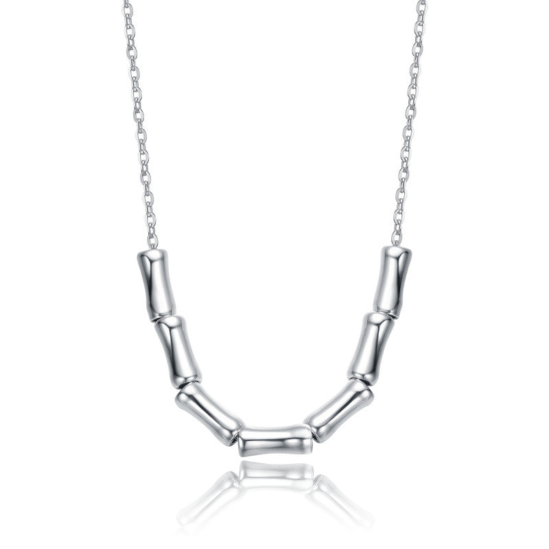 White Gold Plated with Bamboo-Inspired Beads Necklace