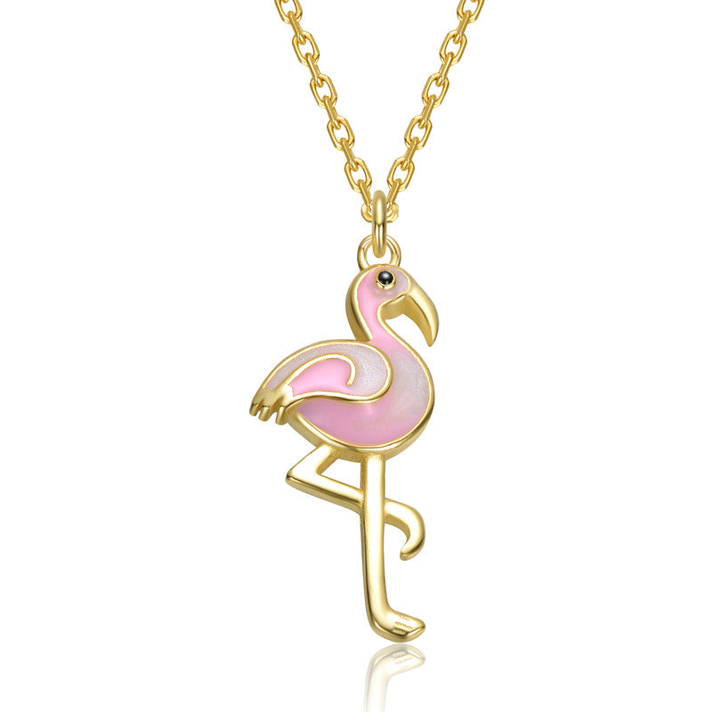14K Gold Plated with Pink & White Enamel Flamingo Pendant Necklace For Kids