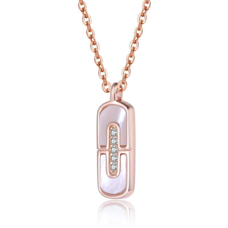 18K Rose Gold plated with Mother Of Pearl & Clear Cubic Zirconia Pendant Necklace For Adults