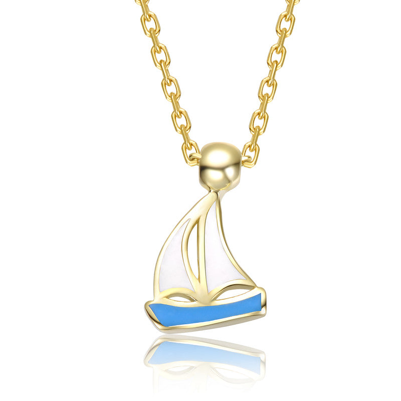 14K Gold Plated with Blue Enamel Elegant Sailboat Design Pendant Necklace For Kids