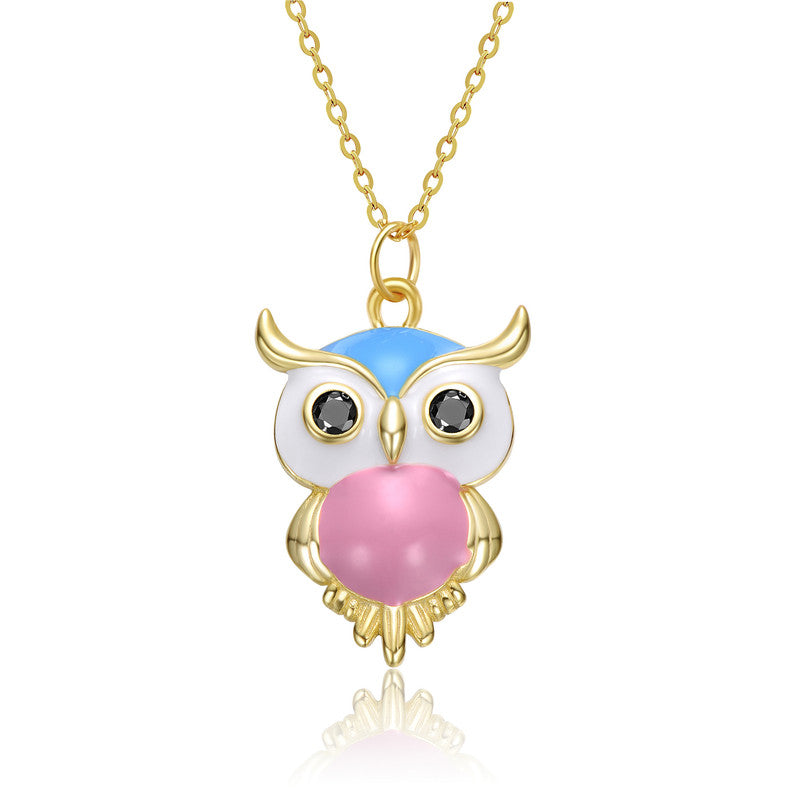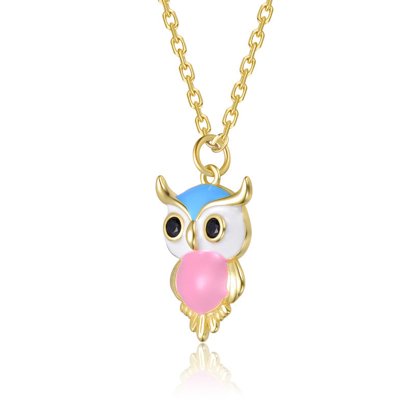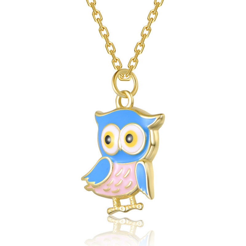 14K Gold Plated with Multi Color Enamel Owl Design Pendant Necklace For Kids