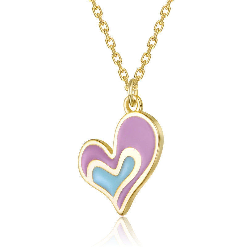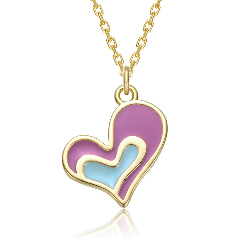 14k Gold Plated with Purple and Blue Enamel Heart In Heart Design Pendant Necklace For Kids