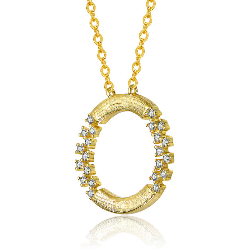 14K Gold Plated with Clear Cubic Zirconia Round Pendant Necklace