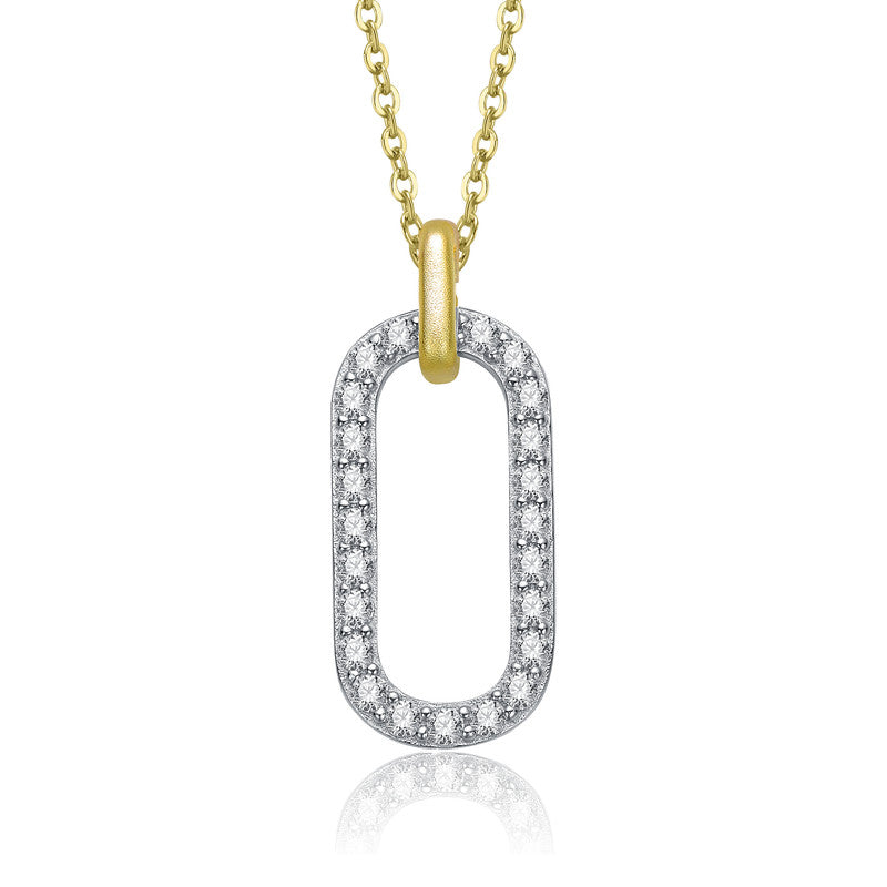 Two Tone with Clear Cubic Zirconia Oval Shaped Drop Pendant Necklace