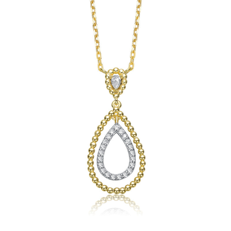 Two Tone with Clear Cubic Zirconia Tear Drop Pendant Necklace
