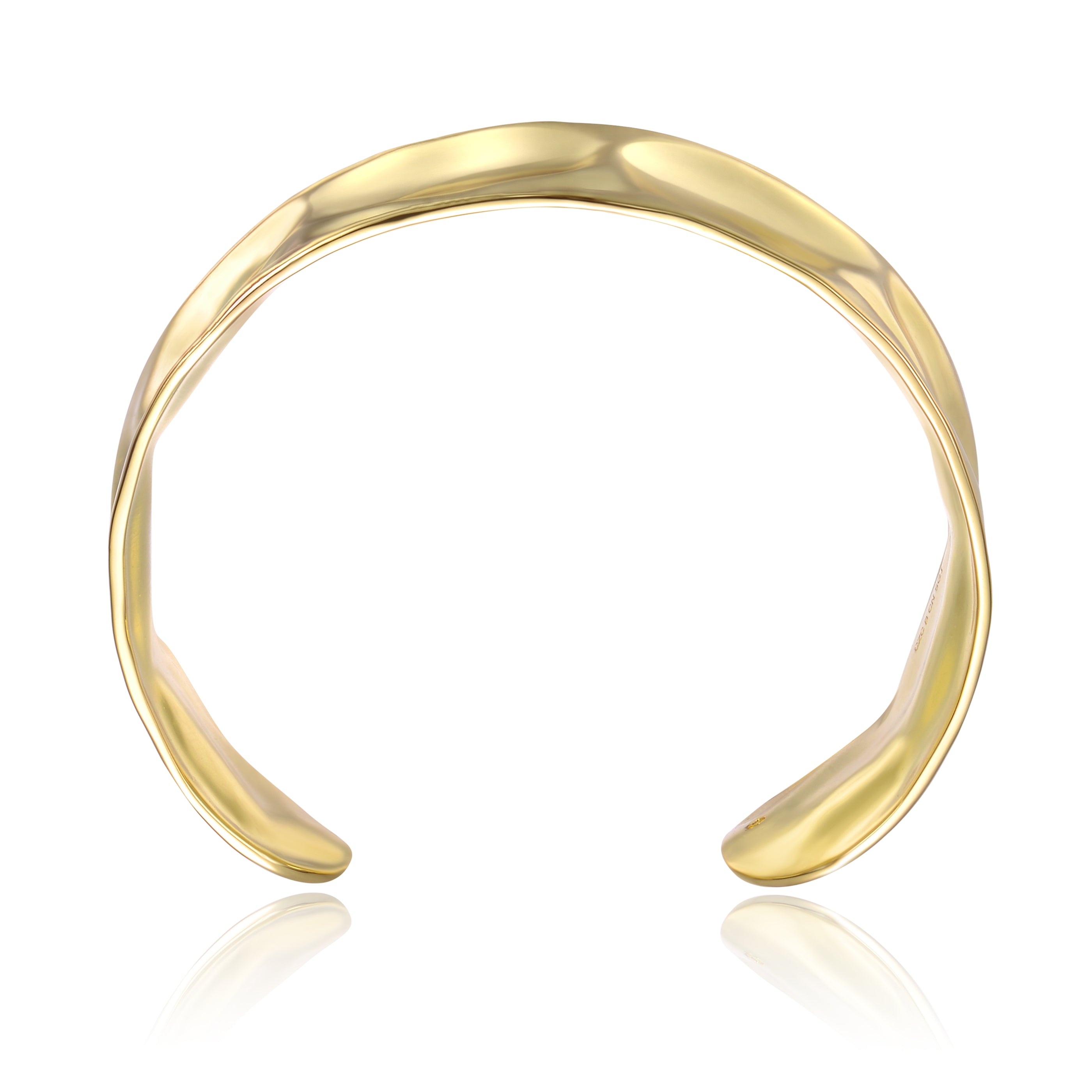 14k Gold Plated Hammered Finish Bangle Bracelet Cuff. A hammered finish lends a modern style to this 14k gold plated open bangle bracelet cuff. The brightly polished shine brings out the beauty and dimension of the detail on the exterior, making it eye-catching and complimentary to any wardrobe. A smooth interior lends comfort to this contemporary bangle bracelet cuff. This glam cuff is adjustable on the bottom, accommodating various wrist sizes with ease.