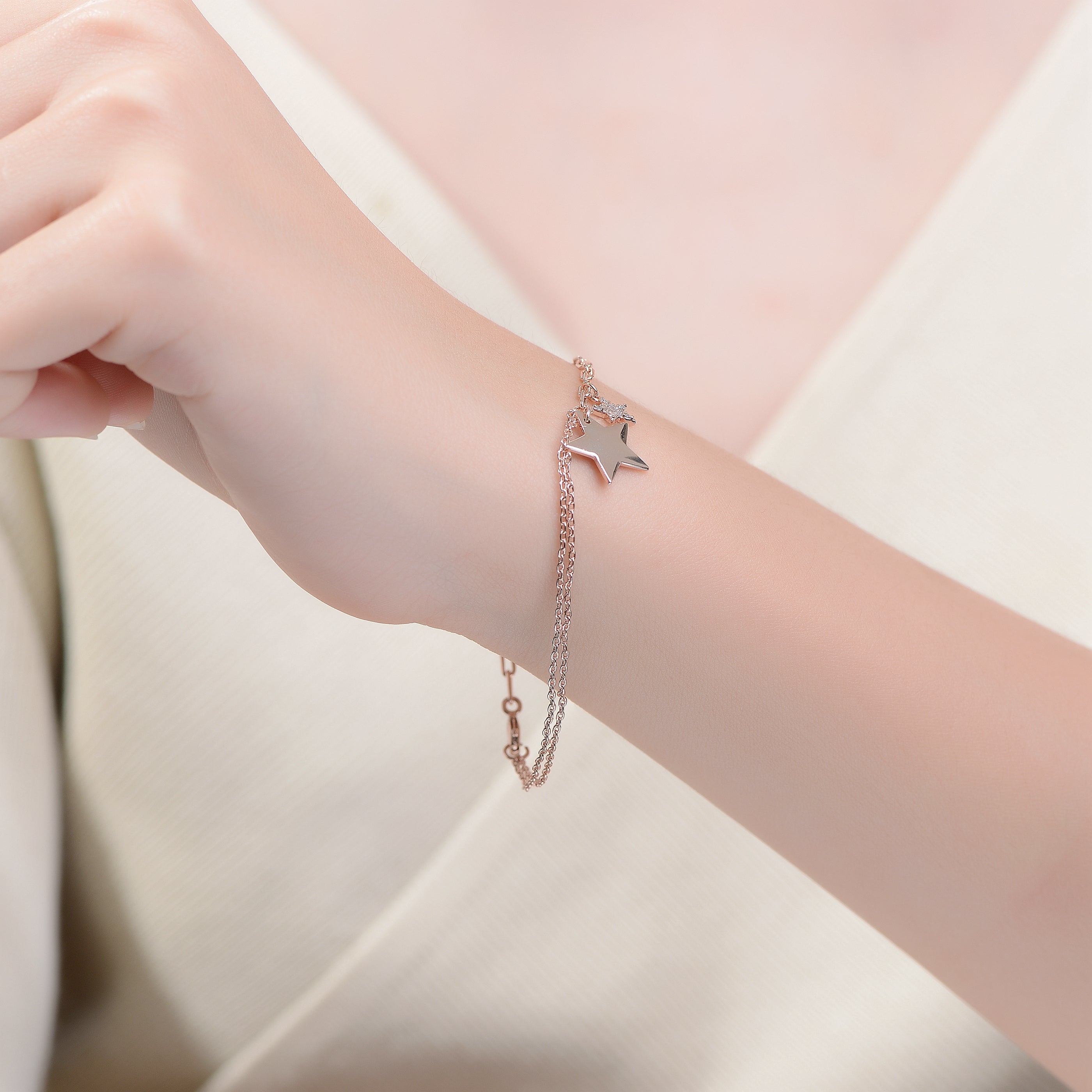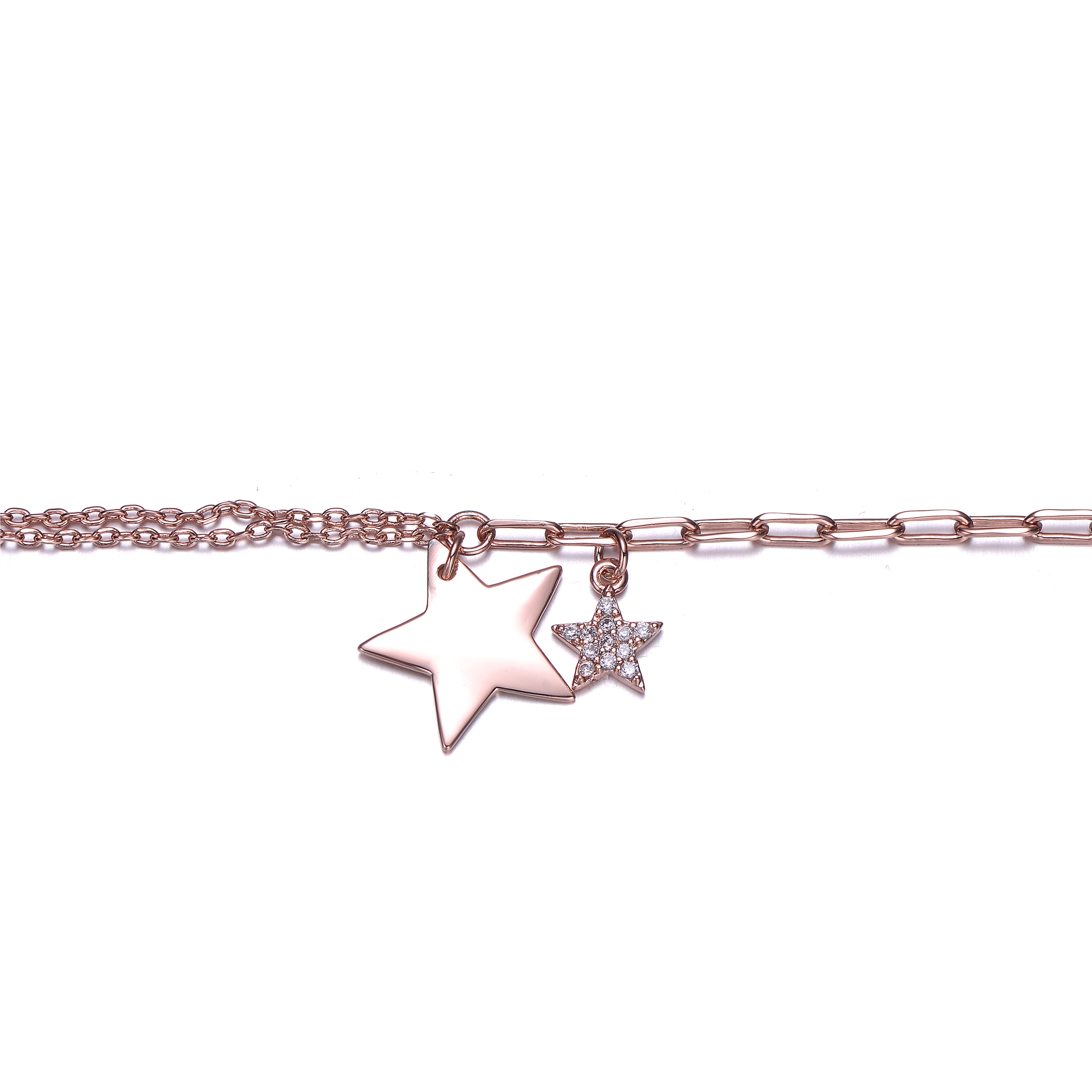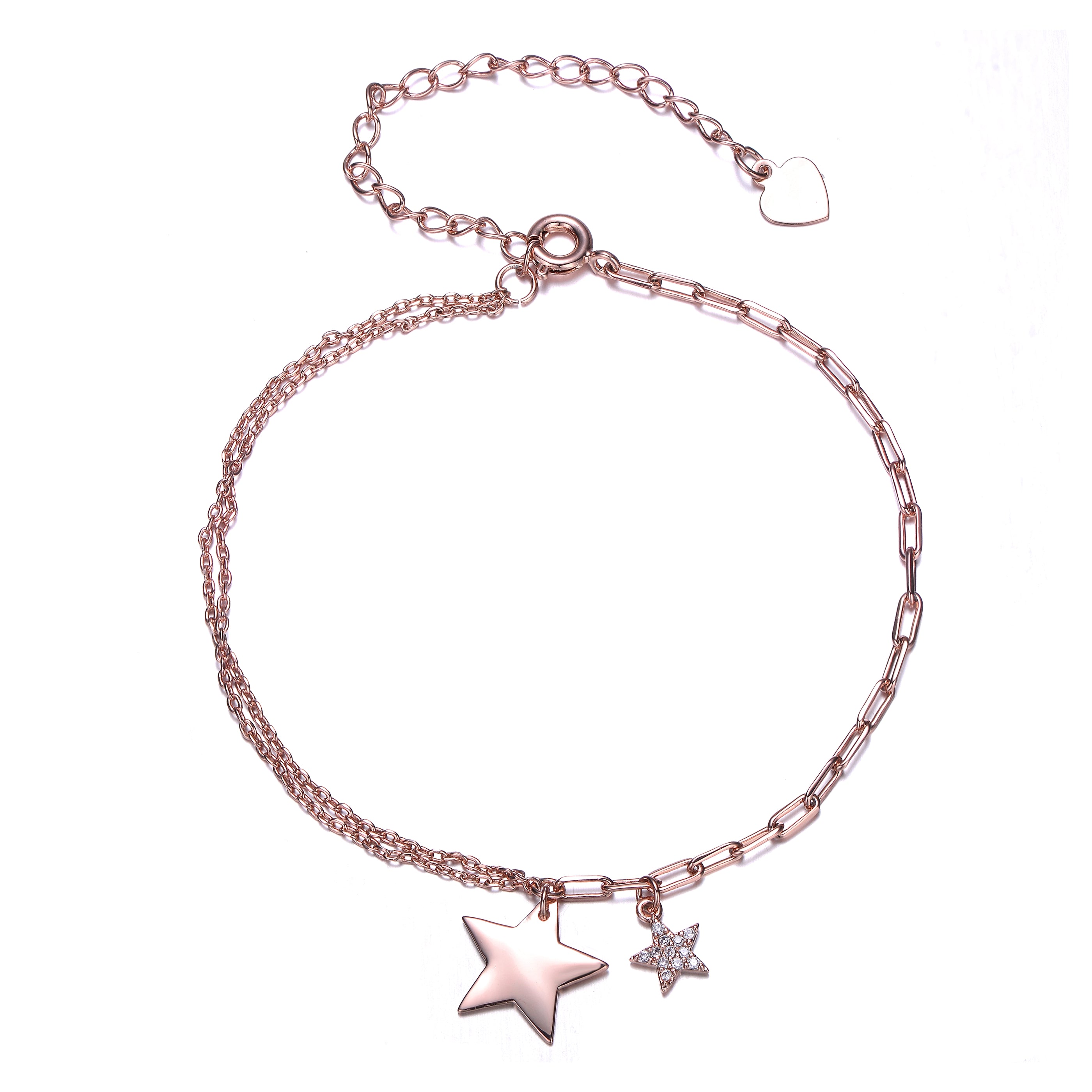 18K Rose Gold Plated Cubic Zirconia Adjustable Star Charm Bracelet