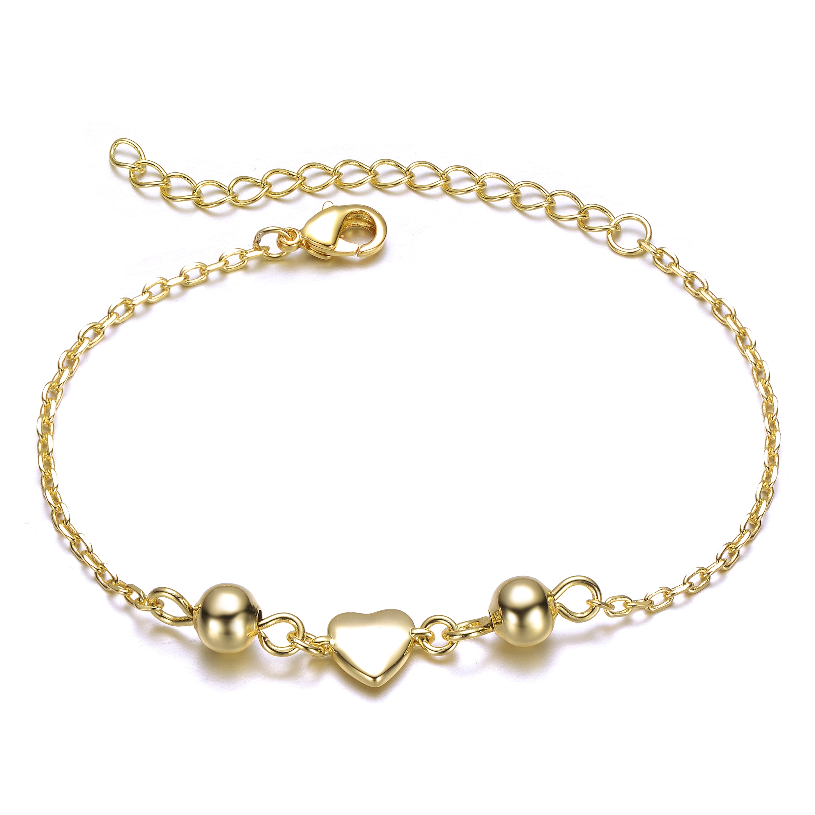 Kids 14k Gold Plated Tiny Heart & Pearl Station Charm Bracelet. Heartfelt wishes and good luck kisses to your favorite child in your life! This super-adorable 14k gold plated kids bracelet features two puffed heart charms and a shimmering pearl in the middle, set in intervals on the top with wire links. A rolo link chain makes this bracelet extra sturdy, held together by a lobster clasp with an extension chain that accommodates growing wrist sizes. Bracelet measures 5" + 1.5" extension chain.