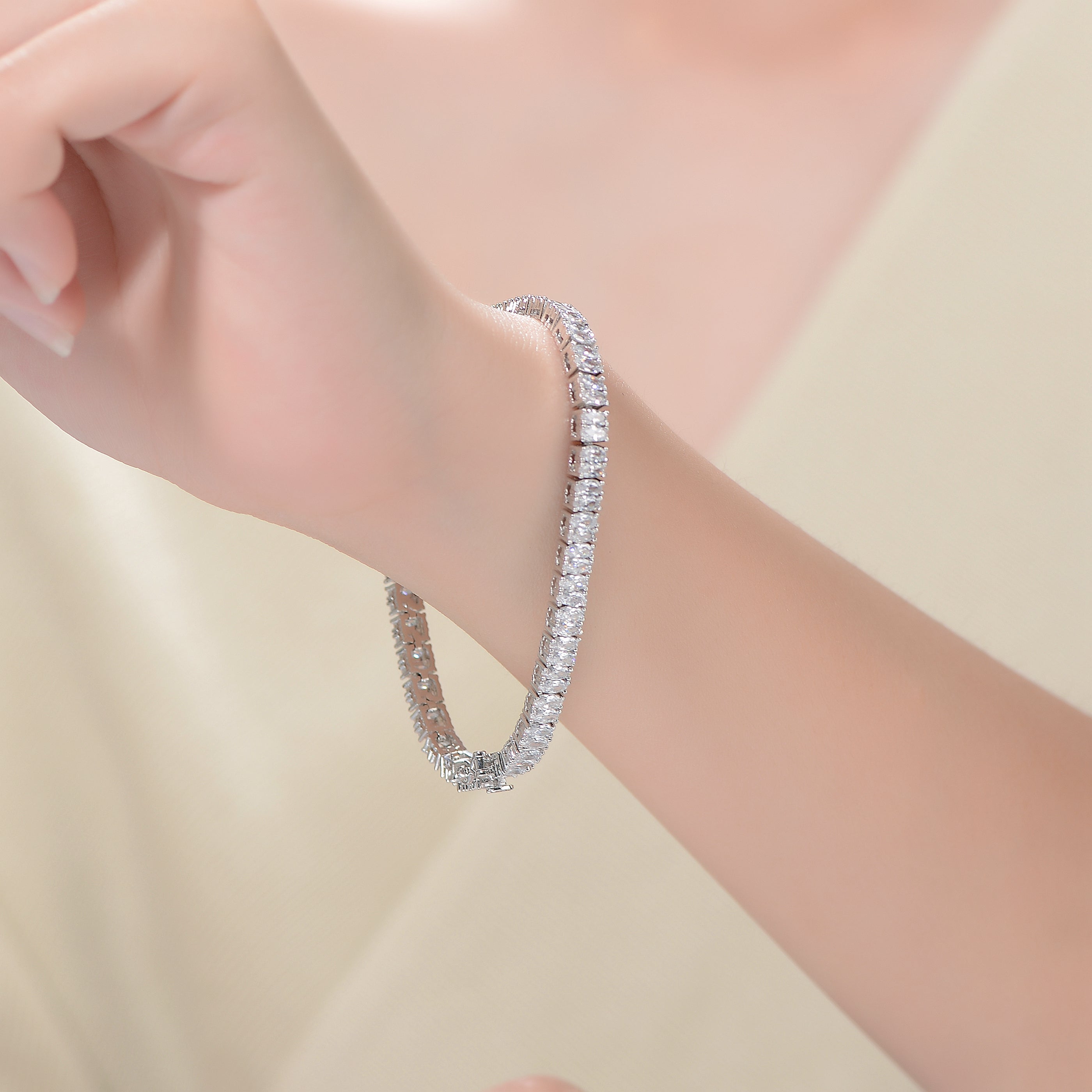 Rhodium Plated with Cubic Zirconias Tennis Bracelet