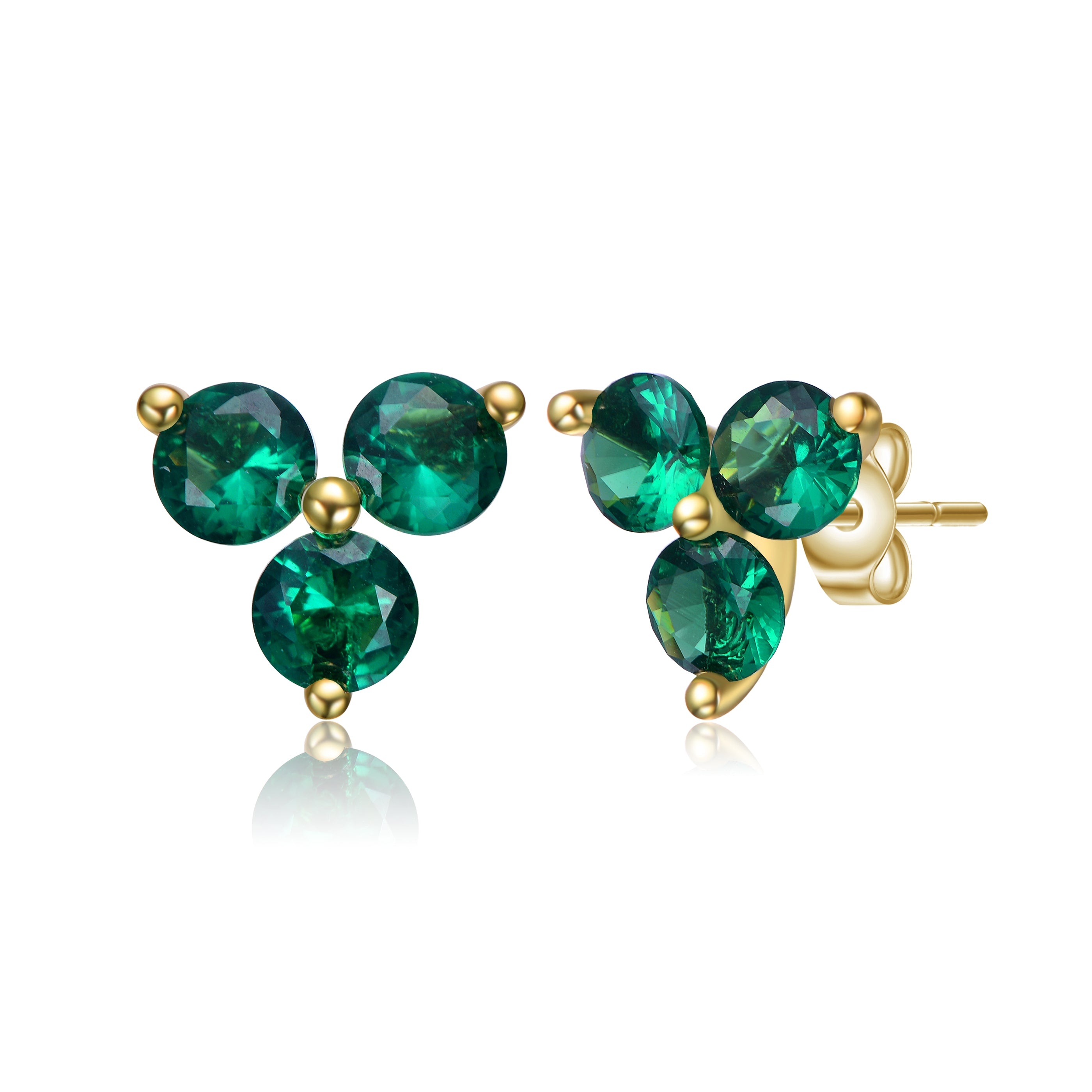 These tiny studs feature vibrant round brilliant cut cubic zirconia prong set in a dazzling trio cluster, giving these petite earrings a trendy look that is easy to mix and match with other jewelry if desired. Take your day, night, or work look to the next level with these shiny stud earrings, perfect for any time.14k gold plating