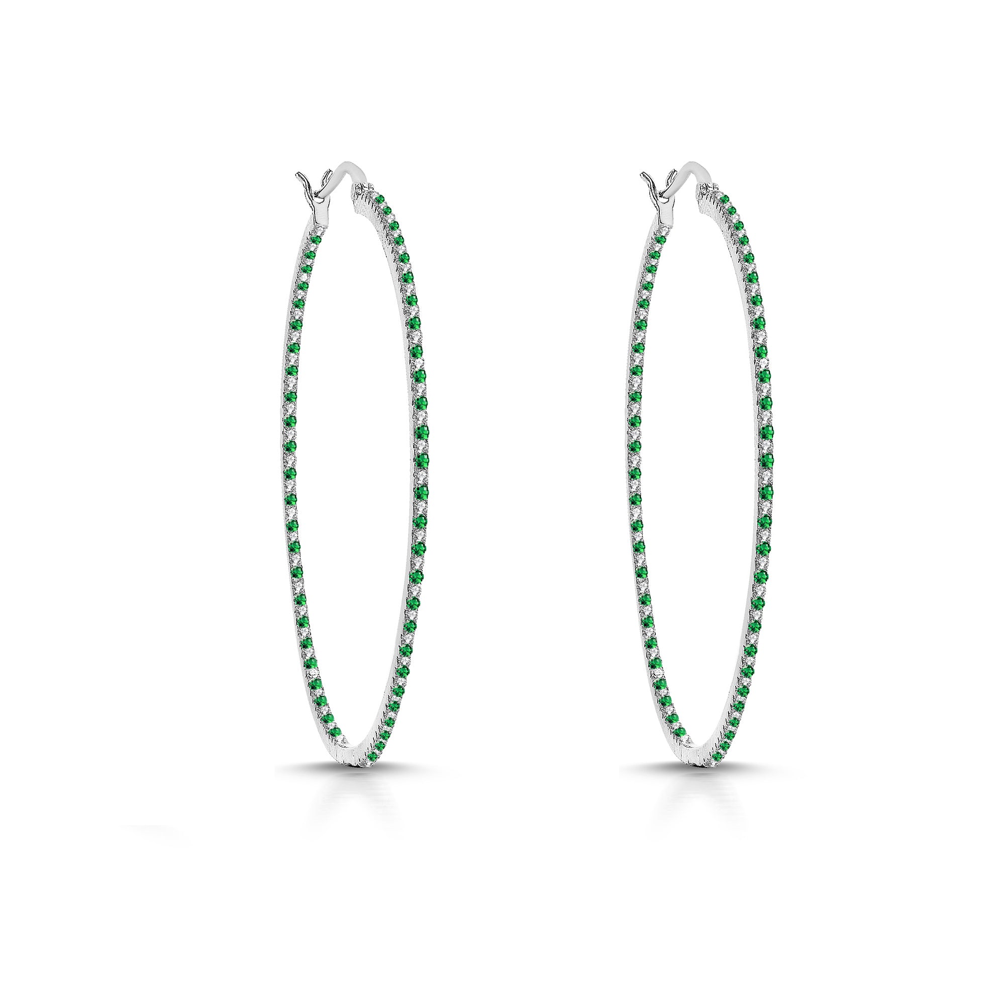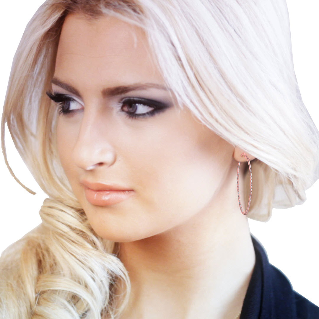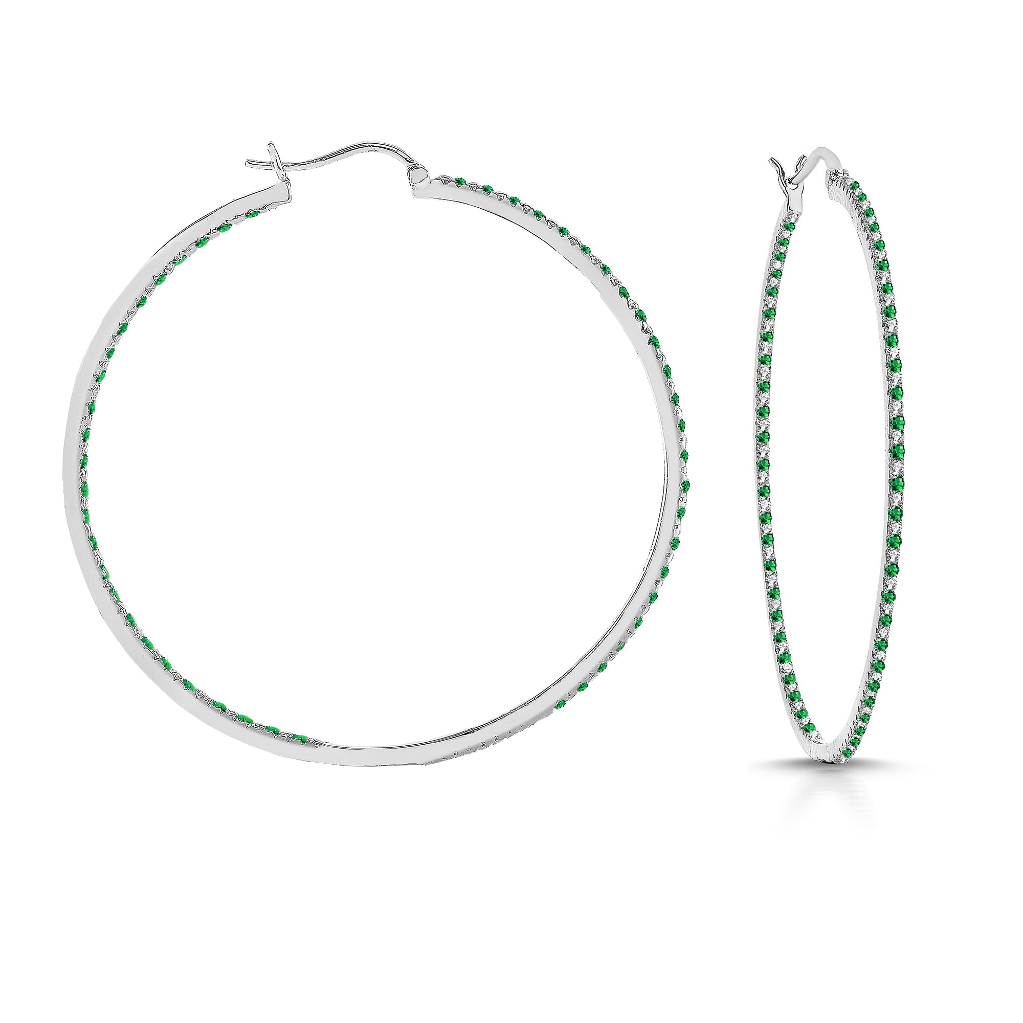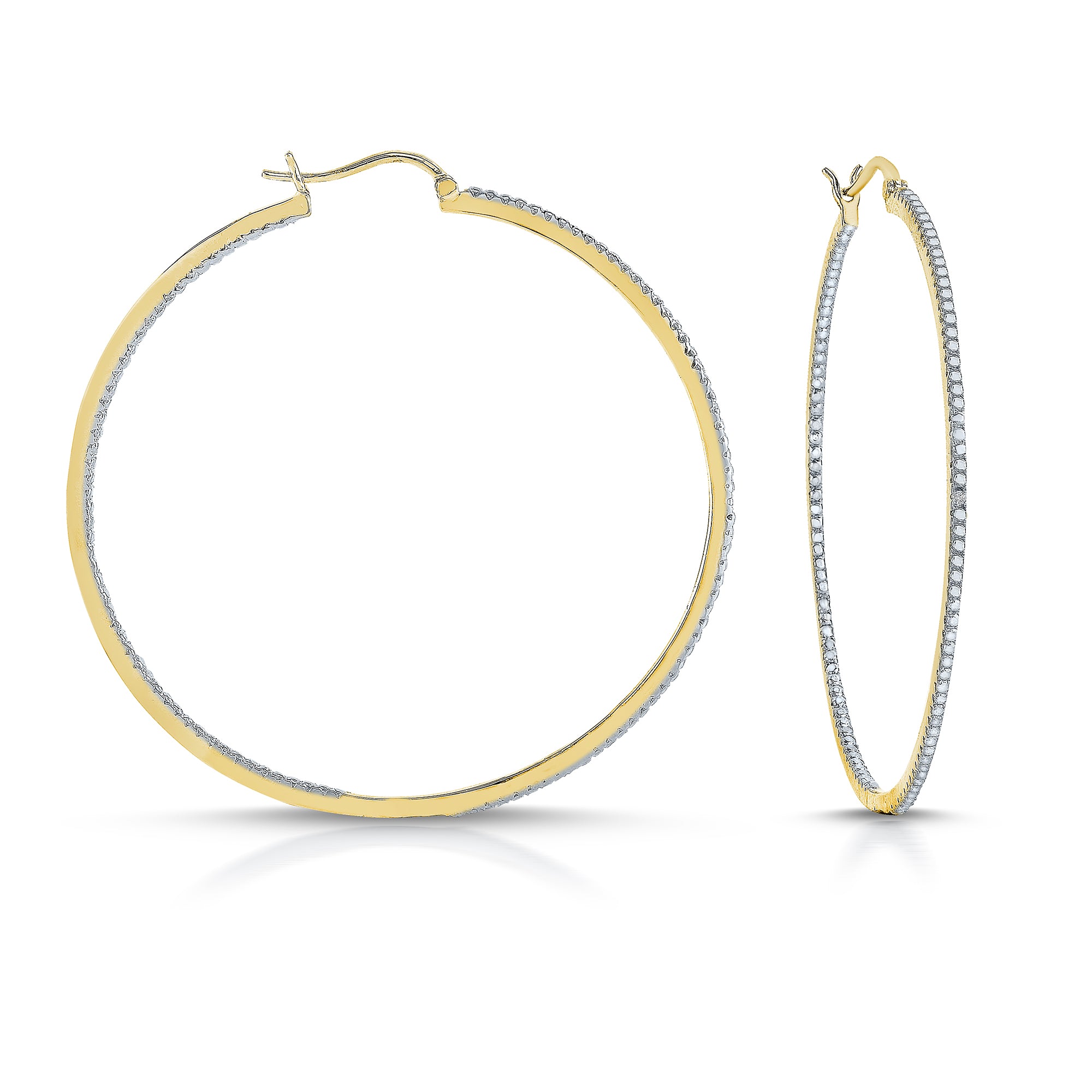 Elegant simulated diamond Inside-Outside Hoop Earrings. These earrings feature clear round simulated diamonds in a prong setting. Available in Platinum or Two Tone Plating and is secured with a latch back closure. Perfect piece of jewelry for combinations. These also make a sensational gift for a special birthday or occasion.