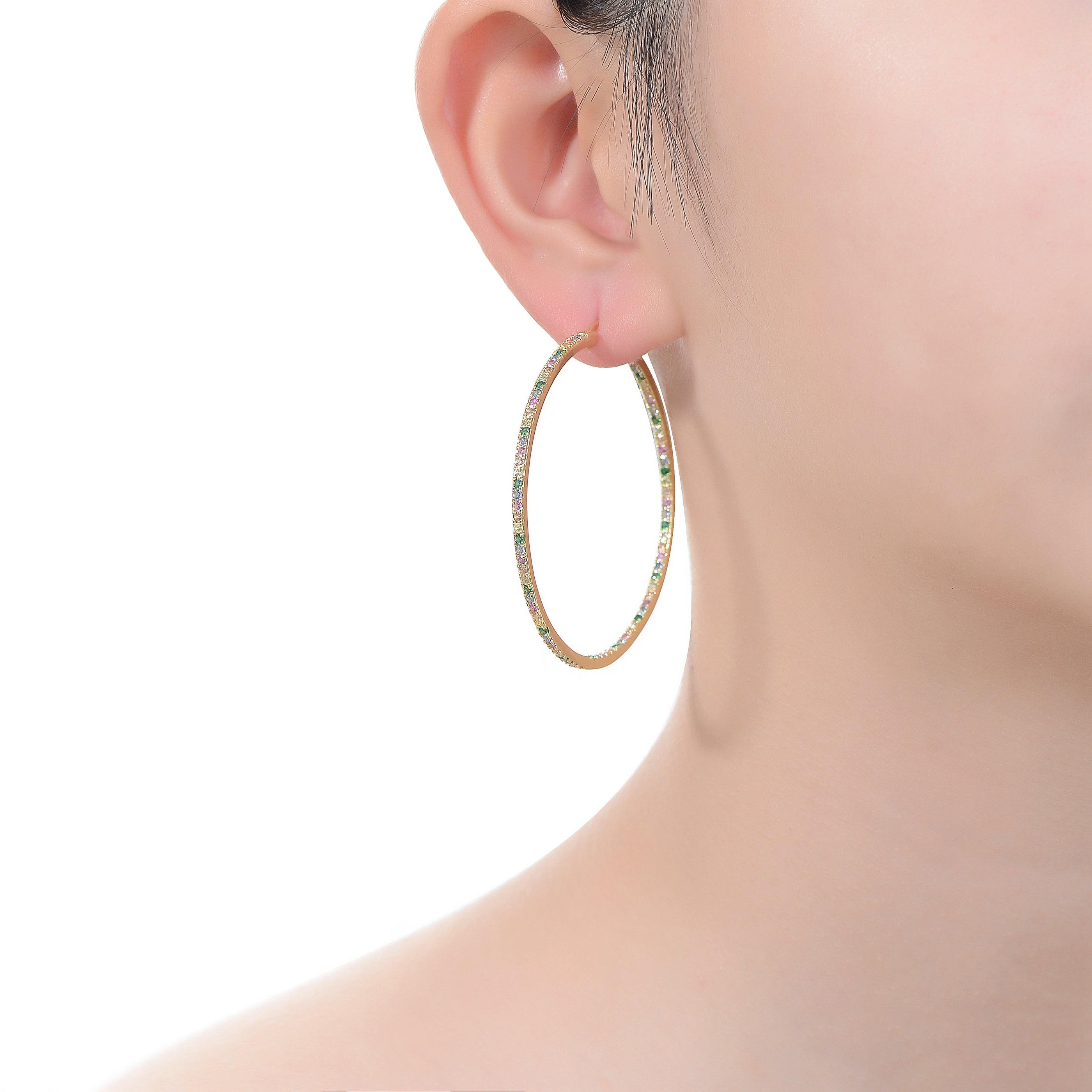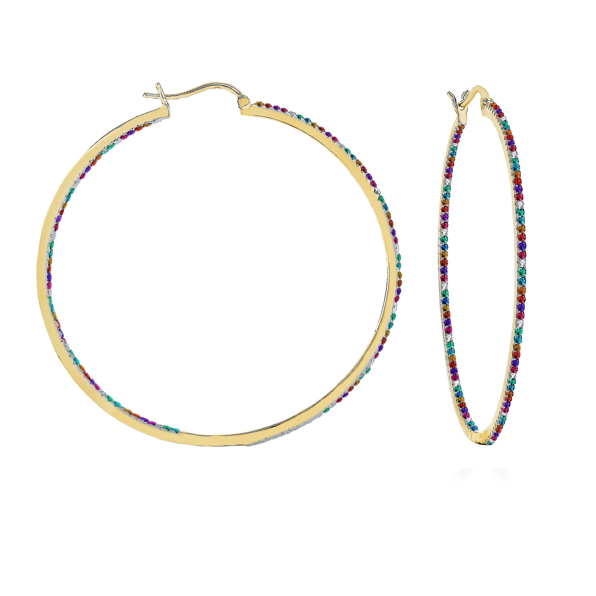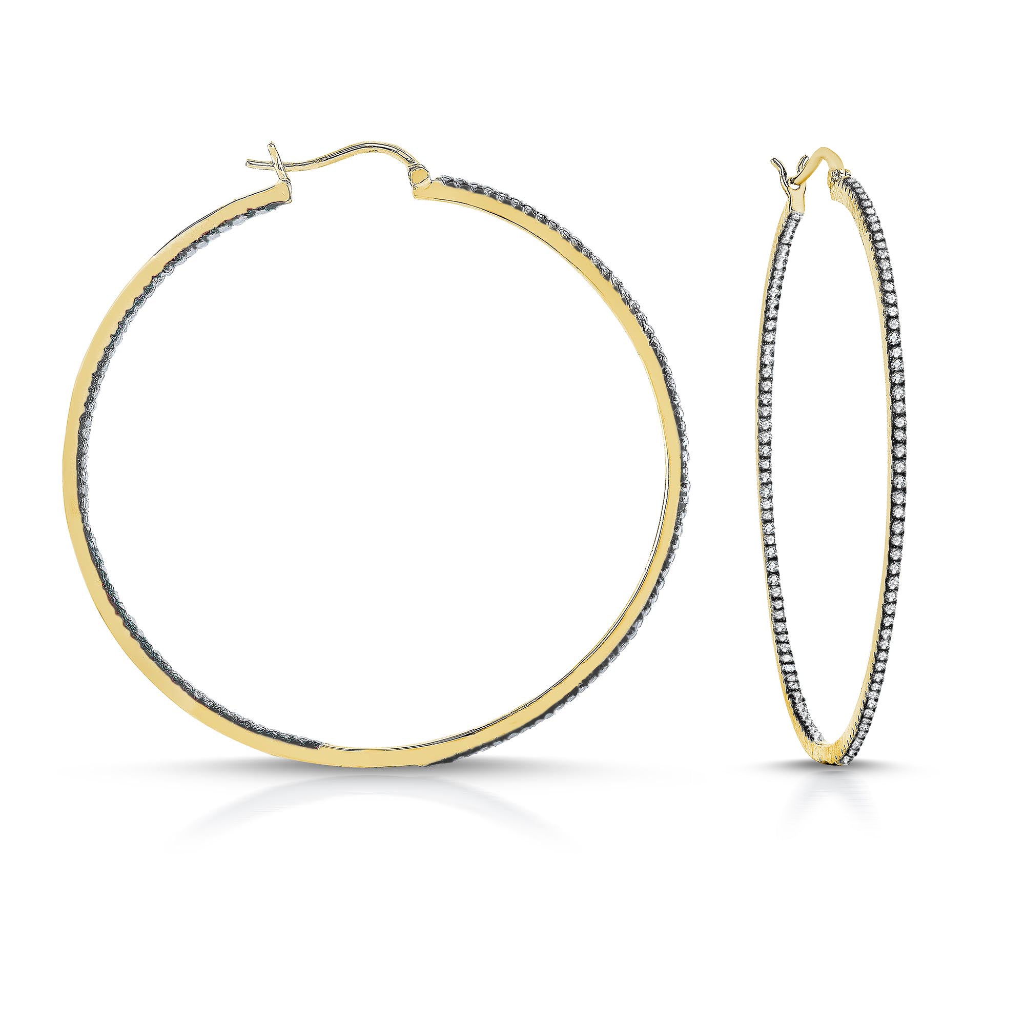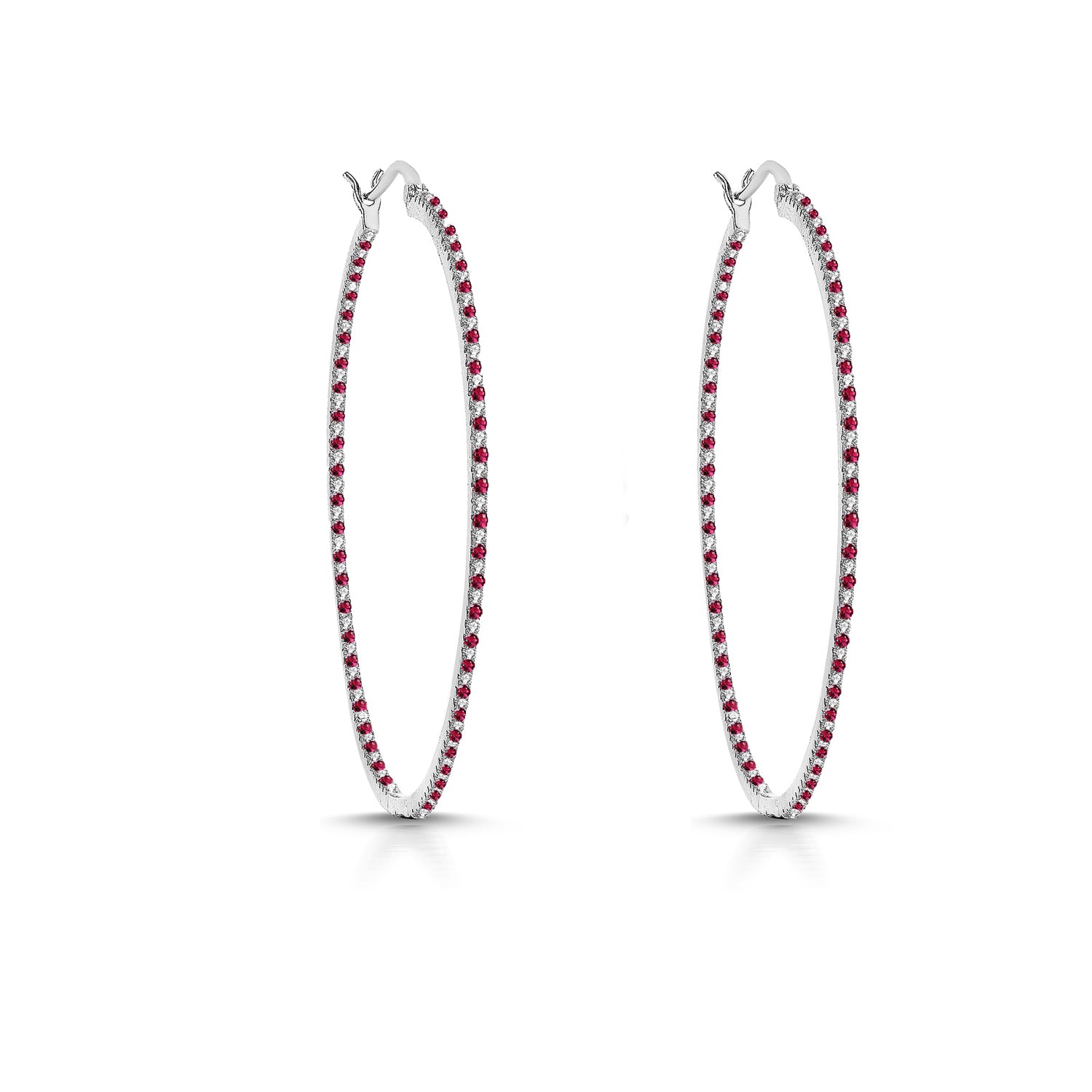 Elegant simulated diamond Inside-Outside Hoop Earrings. These earrings feature clear round simulated diamonds in a prong setting. Available in Platinum or Two Tone Plating and is secured with a latch back closure. Perfect piece of jewelry for combinations. These also make a sensational gift for a special birthday or occasion.