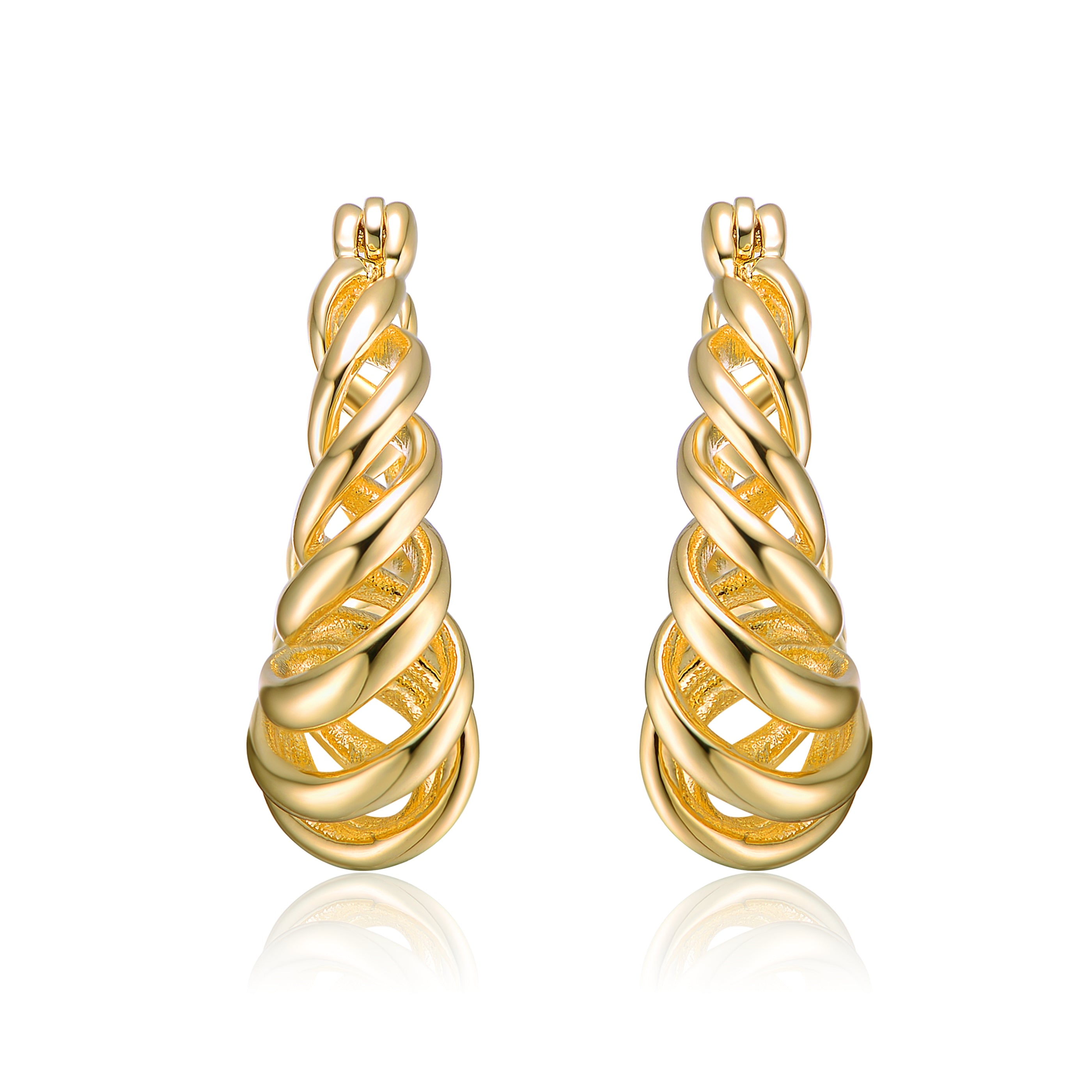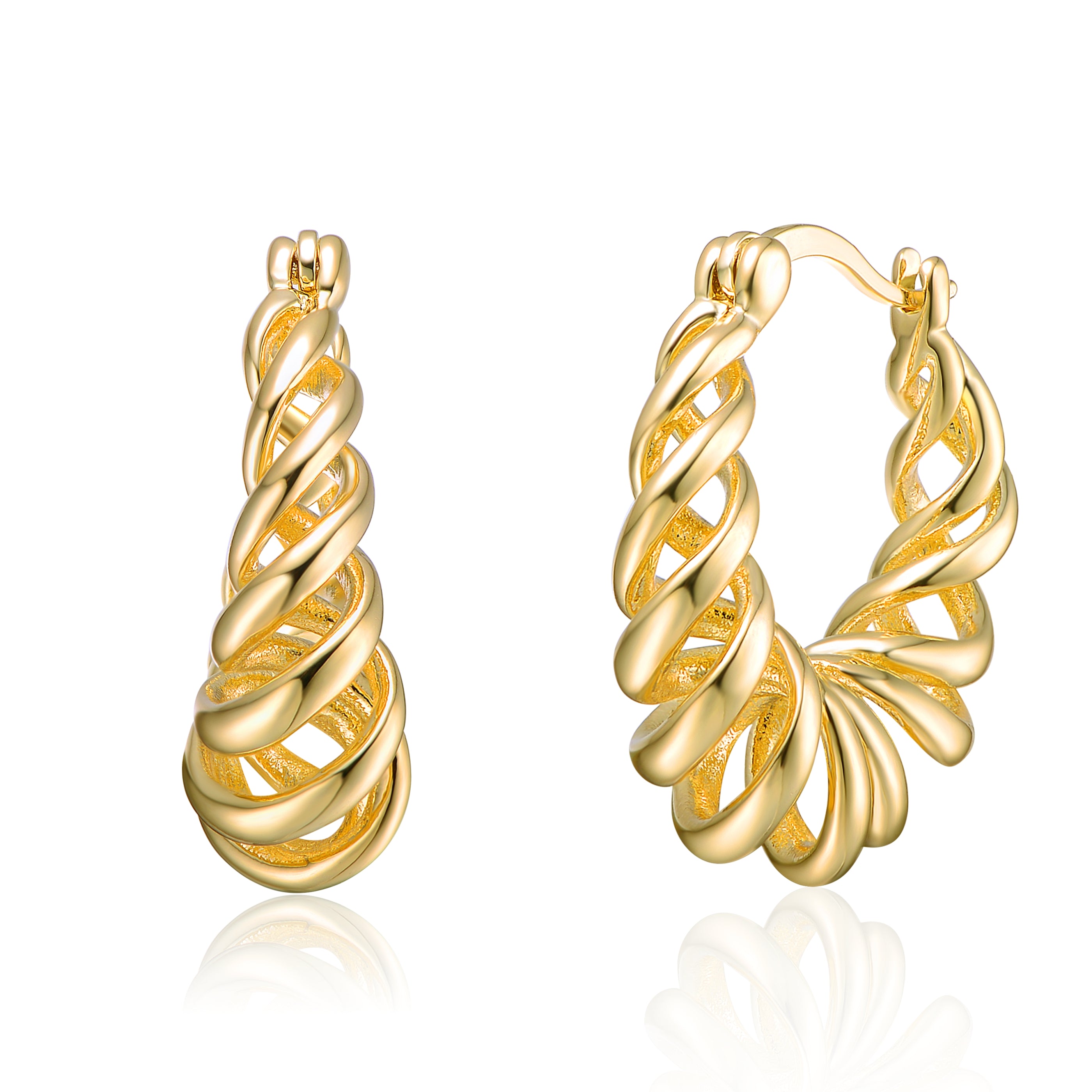 14k Yellow Gold Plated Twisted Halo Hoop Earrings